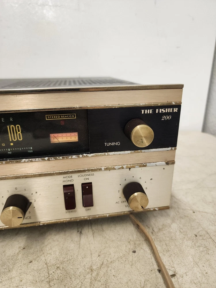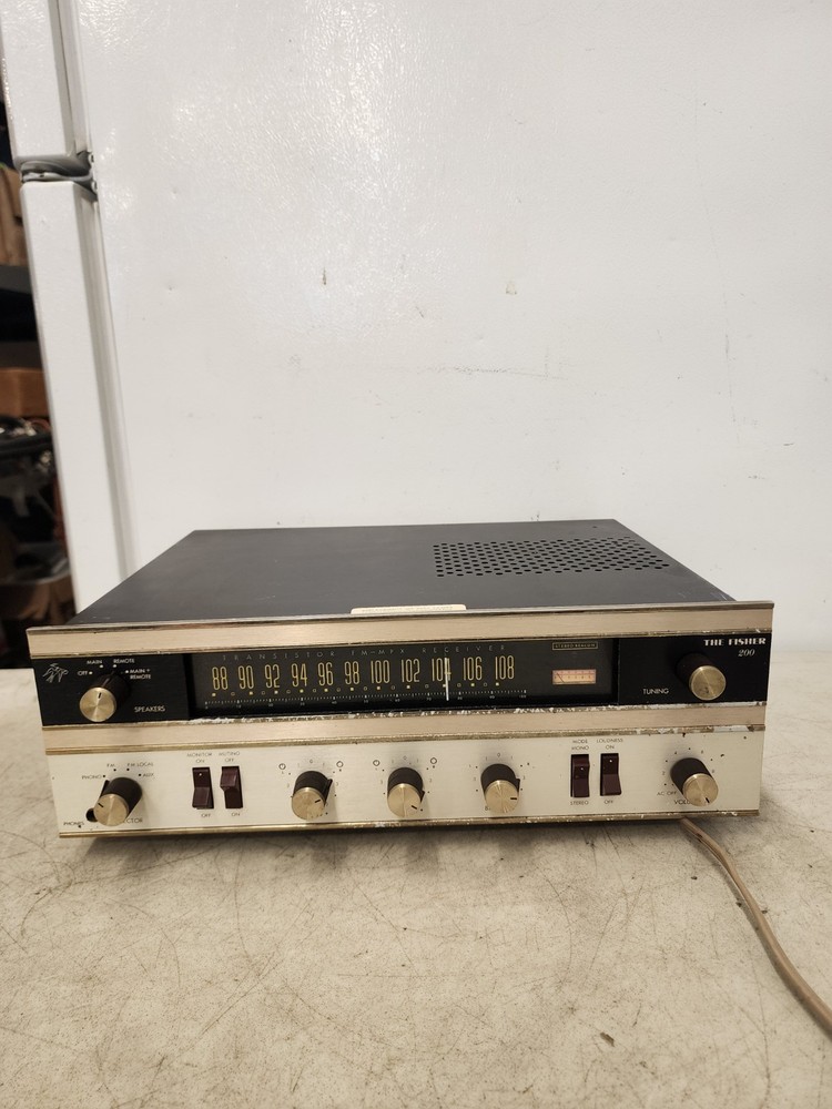 Fisher 200-T - Vintage Receiver - The Fisher 200. Turns on. Radio does have some signs of use, but still fully functional. Fast same day shipping. Please review photos and message me if you have any questions. Item will be Shipped fast with USPS Ground Advantage Or UPS Ground Thank you