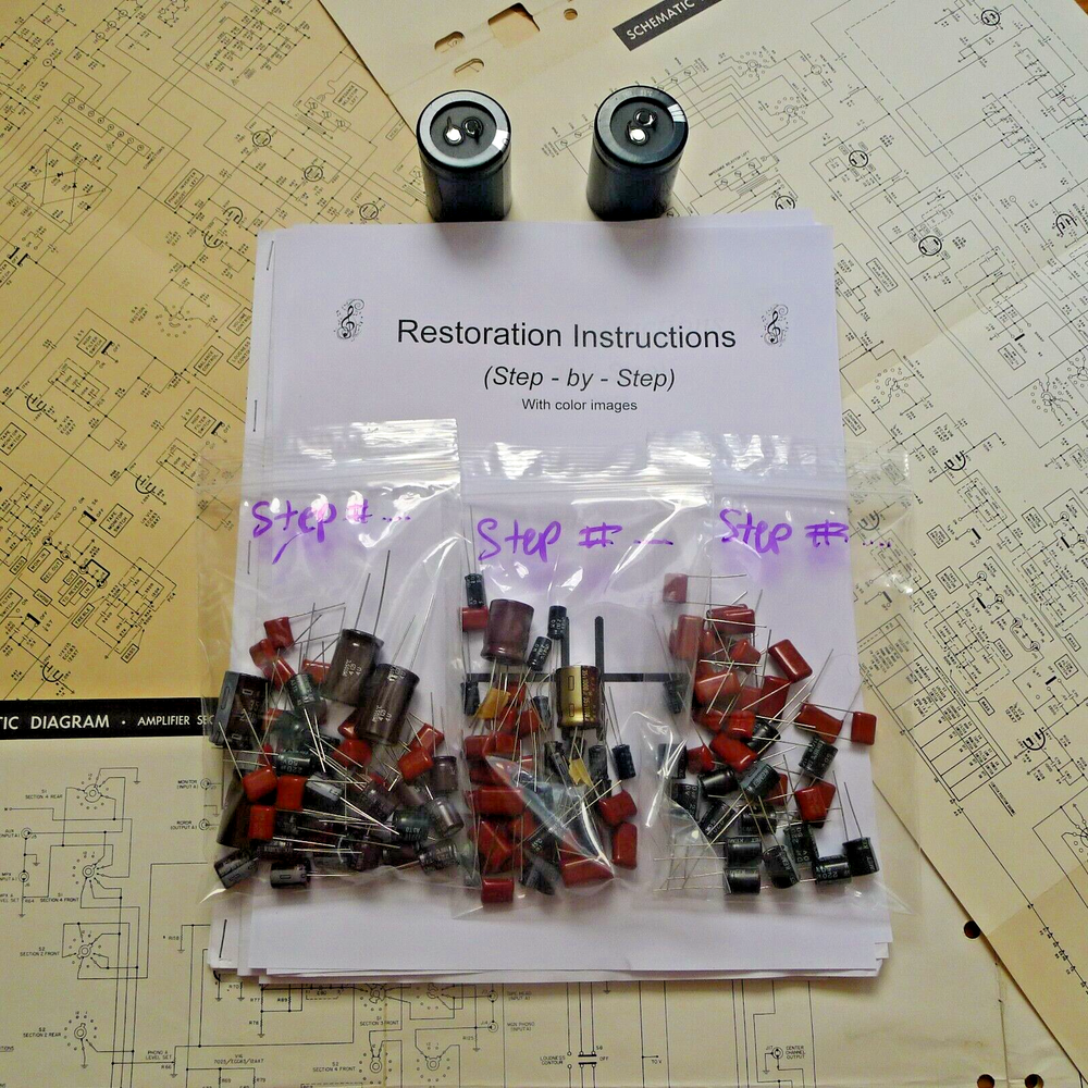 Please note we also offer a LED upgrade kit ------> LINK Or search for item ( eBay item number: 155547843201 ) The scarcity of good, honest techs who can do good and reasonably priced restoration/rebuild of audio equipment inspired me to create this restoration kit. In today's day and age, it is difficult to find a knowledgeable technician who can service your audio gear properly. I have seen many poor quality restorations of equipment that cost way too much for their owners. In 99% of the cases, only a few parts were replaced, instead of a full and proper restoration job. A proper restoration must replace all electrolytic capacitors on all boards. Do not fall for partial kits that restore just one PCB (power supply, power amp, etc.). This is not a good or proper way to restore your audio equipment. It is the same as with car tires; one should never replace just one tire and keep the other worn-out tires on. A proper rebuild requires a full recap of all PCBs. On the other hand, if one succeeds in finding a good tech, the wait time is usually 6-12 months for the unit to be serviced, and costs are sky-high. I have been servicing audio equipment for many years and have developed deep respect for all good equipment. Knowing how amazing and warm these units can sound, I decided to put together this kit. It includes very good upgrades and improvements that must be done to the unit. This restoration kit will make a huge difference in the sound quality. All the parts are of high-quality Japanese Nichicon / Rubycon / WIMA / IC / United Chemi capacitors. I am extremely particular about the quality of the parts provided in this kit. Knowing how many bogus/fake caps, diodes, resistors, etc. are out there, I source all the parts from reputable wholesalers and buy them in bulk. Vintage audio equipment has the potential to deliver rich and authentic sound when it is properly restored. Not only can it enhance your listening experience, but it can also evoke memories and bring joy to your life. Let's work together to bring your vintage gear back to its full potential, and make sure you have the music you deserve. ♩♬♫♪♫♩♬ “They Shall Have Music”- Avery Fisher Included in this kit: 1. Power/Filter stage capacitors ( Nichicon / Nippon / United Chemi) electrolytic capacitors. Note, the image with silver multicap cans shown restaffed with new caps is for illustration purpose only. 2. Detailed instruction with colorful images, schematics, manuals (all of these are in electronic form, I consider these much better than printed version due to zoom availability). 3. Schematics 4. Complete audio path upgrade with high quality WIMA or IC (Illinois capacitor) film capacitors. 5. Parts for compete recap of all the electrolytic capacitors. 6. Complete recap of all PCBs. 7. Transistors (PNP, NPN). 8. fuse/s 9. Instructions on how to clean the chassis. 10. Instructions on how to clean a faceplate 11. Instructions on how to polish knob covers. 12. Support/help to a reasonable extend in case you need it. (This is what makes us different from other sellers.) LED upgrade kit ------> LINK We also offer a great selection of Restoration Kits , LED conversion kits , Volume Controls , Rotary Switches and other rare/unique parts; Make sure to check our store ---------> LINK (Use the search bar inside the shop to find what you need faster) We may also be interested in purchasing your equipment