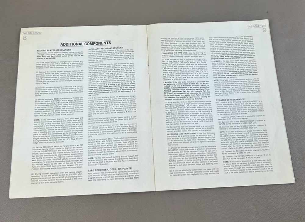 Fisher 202 Receiver Instruction Manual This manual/schematic is gently used and may have slight yellowing/patina. Corners and edges may have light wear, light bends. Professionally packaged between 2 cardboard stock sheets and placed inside of a plastic sleeve inside of mailer for effective protection in shipping. No P.O. boxes please!