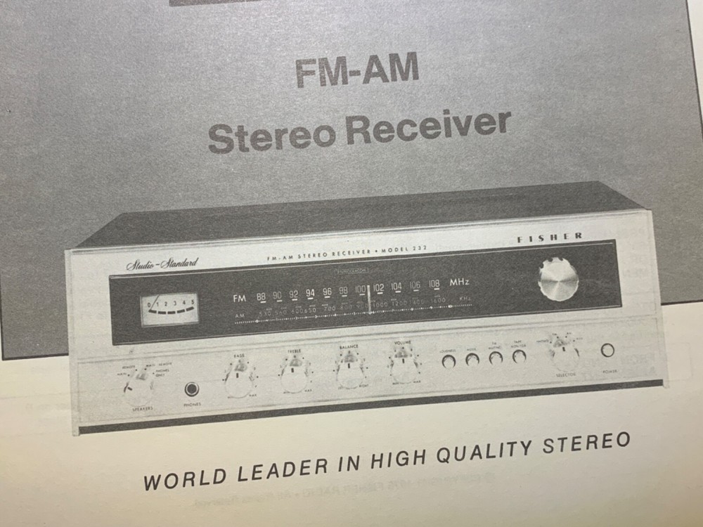 I am selling an Photocopy Fisher 232 Receiver Service Manual.. Item was used at a repair center .. Item will be shipped USPS First Class or Media Mail..