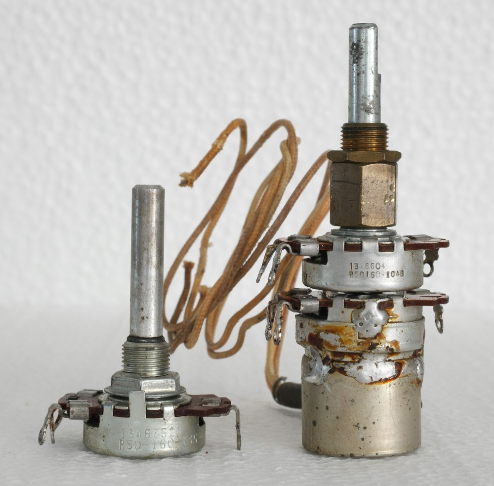 Up for sale is Volume and Balance Potentiometers for Fisher 400 Tube Receiver. Part Number : 1. R50160-104B ( Volume ) 2. R50160-135 ( Balance ) As the photos show, they are in good condition. Please look at all the pictures for an over all condition, before bidding. If you have any questions please email me. No returns please! Shipping to Continental United States Only (48 States). Thank You for looking, and good luck with your bids!!!
