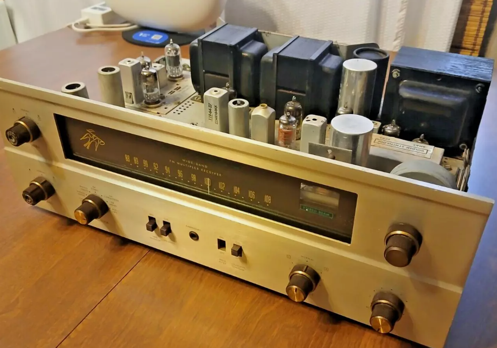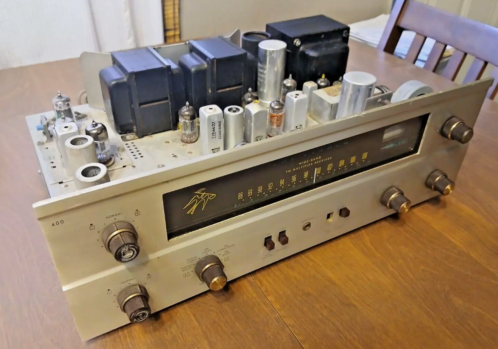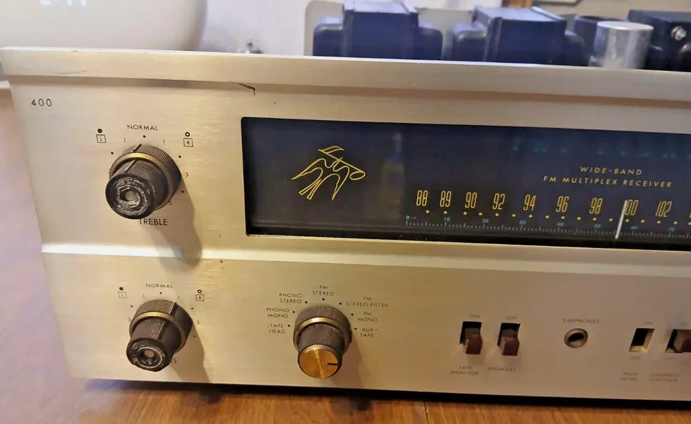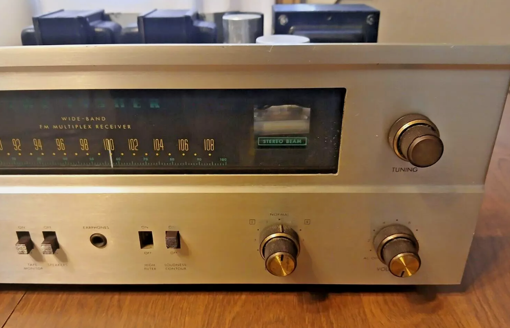 This is a fantastic amp. Really powerful, and one of the best sounding receivers I have heard In good condition overall. One of the switches is missing, and there is no sound output from the tuner, and the tuner display doesn't work. I am unsure what the issue is. I would have this amp looked at by a tech before regular use, and have some or all of the capacitors replaced, there are kits for this available on ebay. It puts clear sound out of both channels. I recently purchased this, but overspent my budget, so putting it back up for sale. Will pack this with great care. these fisher units are a good investment, they keep going up in value.