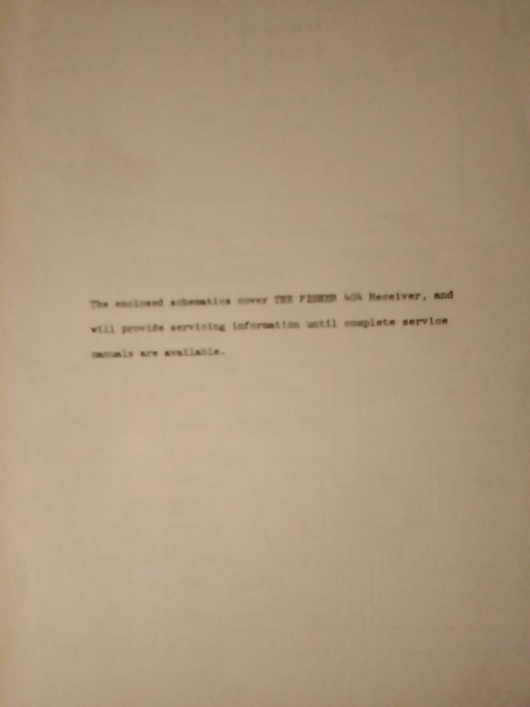 I am selling an Original Fisher 404 Receiver Preliminary Schematic Service Manual ....Item will be shipped USPS Media Mail..