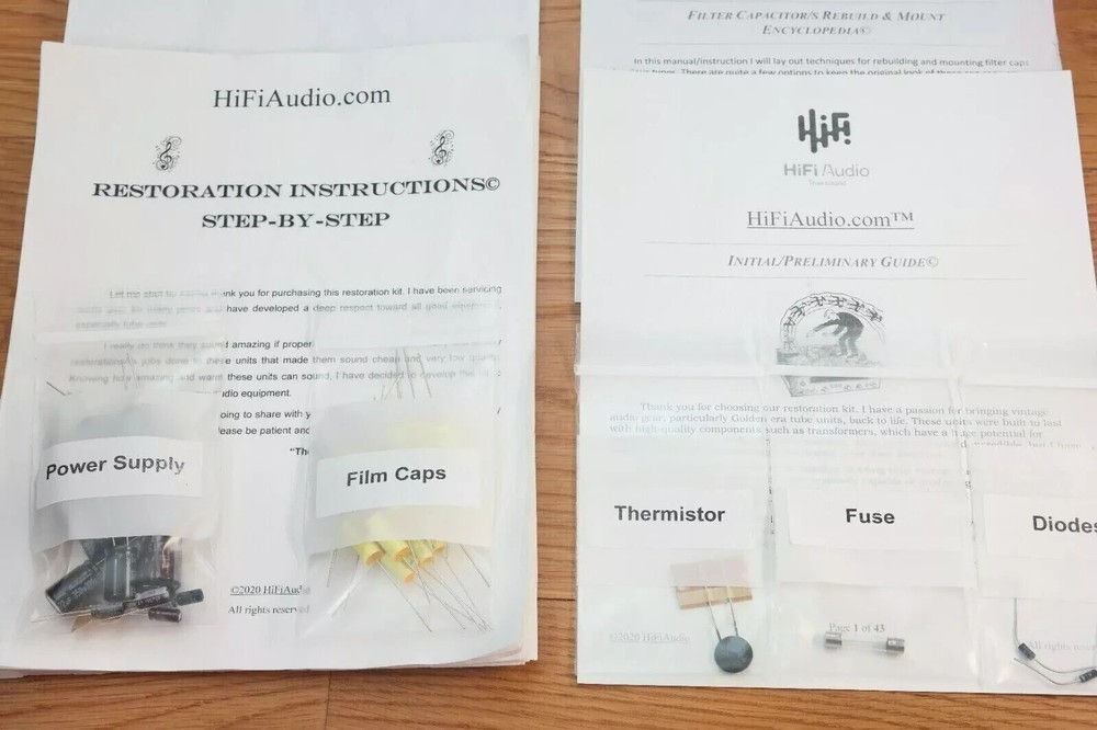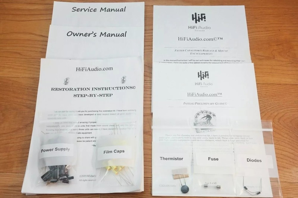 The scarcity of good, honest techs who can do good and reasonably priced restoration/rebuild of audio equipment inspired me to create this restoration kit. In today's day and age, it is difficult to find a knowledgeable technician who can service your audio gear properly. I have seen many poor quality restorations of equipment that cost way too much for their owners. In 99% of the cases, only a few parts were replaced, instead of a full and proper restoration job. A proper restoration must replace all electrolytic, paper, film, oil capacitors. Do not fall for partial kits. This is not a good or proper way to restore your audio equipment. It is the same as with car tires; one should never replace just one tire and keep the other worn-out tires on. A proper rebuild requires a full recap of all oil, paper, lytic capacitors. On the other hand, if one succeeds in finding a good tech, the wait time is usually 6-12 months for the unit to be serviced, and costs are sky-high. I have been servicing audio equipment for many years and have developed deep respect for all good equipment. Knowing how amazing and warm these units can sound, I decided to put together this kit. It includes very good upgrades and improvements that must be done to the unit. This restoration kit will make a huge difference in the sound quality. All the parts are of high-quality Japanese Nichicon / Rubycon / WIMA / IC / United Chemi capacitors. I am extremely particular about the quality of the parts provided in this kit. Knowing how many bogus/fake caps, diodes, resistors, etc. are out there, I source all the parts from reputable wholesalers and buy them in bulk. Vintage audio equipment has the potential to deliver rich and authentic sound when it is properly restored. Not only can it enhance your listening experience, but it can also evoke memories and bring joy to your life. Let's work together to bring your vintage gear back to its full potential, and make sure you have the music you deserve. ♩♬♫♪♫♩♬ “They Shall Have Music”- Avery Fisher Included in this kit: 1. Power/Filter stage capacitors ( Nichicon / Nippon / United Chemi) electrolytic capacitors. 1 x custom made PCB adapter plate to help one replace the multi-section can capacitor. Note, the image with silver multicap cans shown restaffed with new caps is for illustration purpose only. 2. Detailed instruction with colorful images, schematics, manuals (all of these are in electronic form, I consider these much better than printed version due to zoom availability). 3. Schematics (all of these are in electronic form, I consider these much better than printed version due to zoom availability). 4. Complete audio path upgrade with high quality WIMA or IC (Illinois capacitor) film capacitors. 5. Parts for compete recap of all the electrolytic capacitors. 6. Complete recap of all oil, film, paper, lytic caps. 7. fuse/s 8. Instructions on how to clean the chassis. 9. Instructions on how to clean a faceplate 10. Instructions on how to polish knob covers. 11. Support/help to a reasonable extent in case you need it. (This is what makes us different from other sellers.) The custom-designed PCB boards simplify the restoration process for multi-capacitor can capacitors in vintage audio equipment. Clearly labeled with polarity markings and mounting guides, they ensure precise assembly and seamless integration into your restoration project. These PCBs are also designed with cuts and openings to accommodate the original multi-section capacitor covers, allowing them to be reinstalled and preserving the authentic vintage look. An essential addition for maintaining both authenticity and functionality in vintage audio gear. We also offer a great selection of Restoration Kits , LED conversion kits , Volume Controls , Rotary Switches and other rare/unique parts; Make sure to check our store ---------> LINK (Use the search bar inside the shop to find what you need faster) We may also be interested in purchasing your equipment