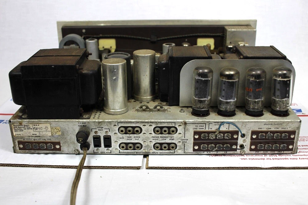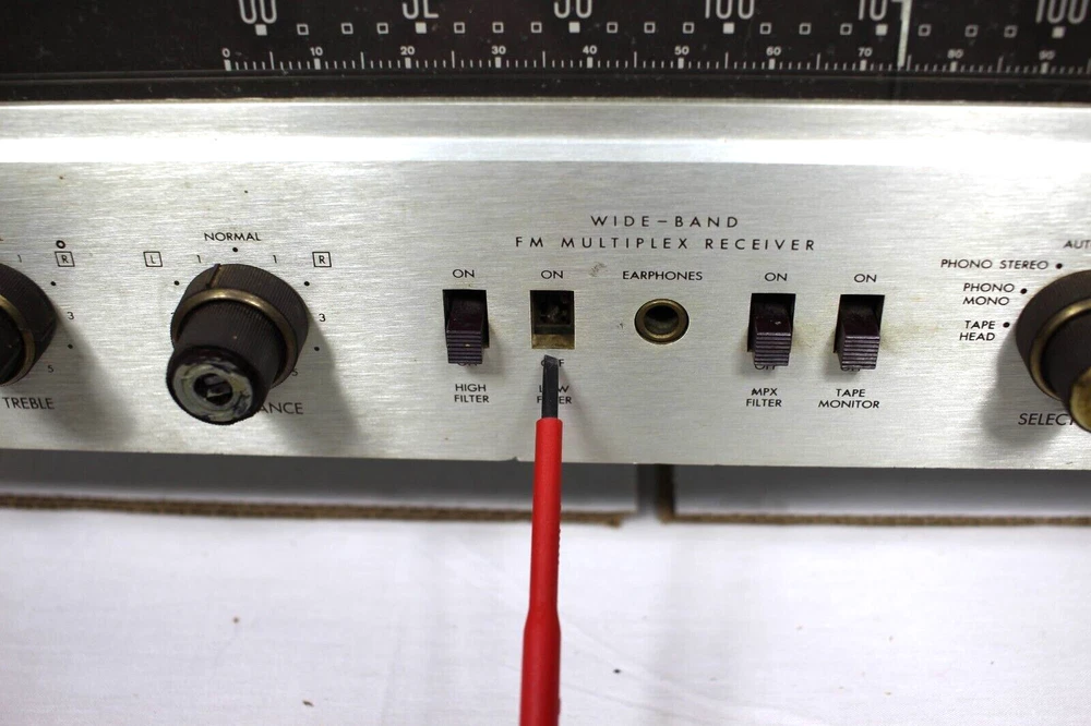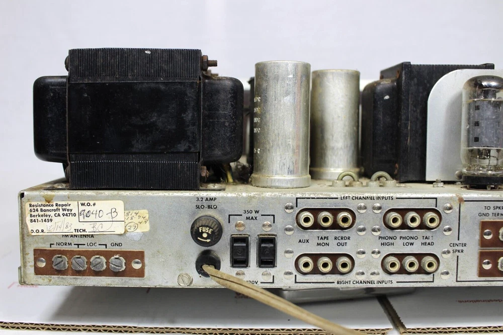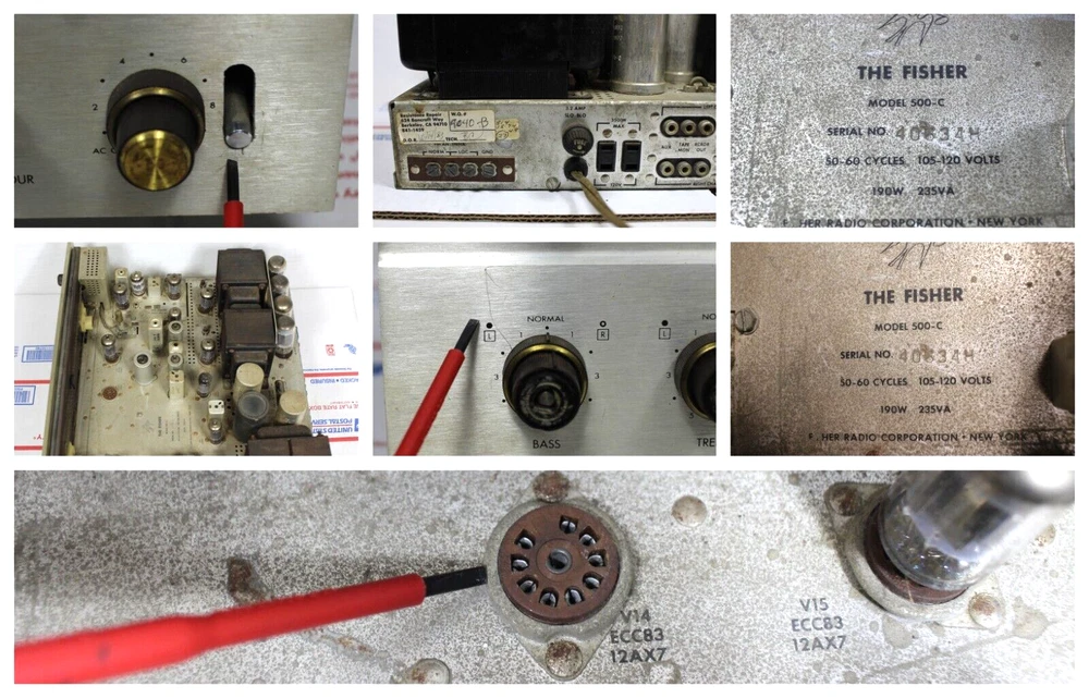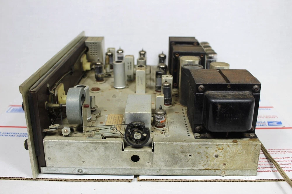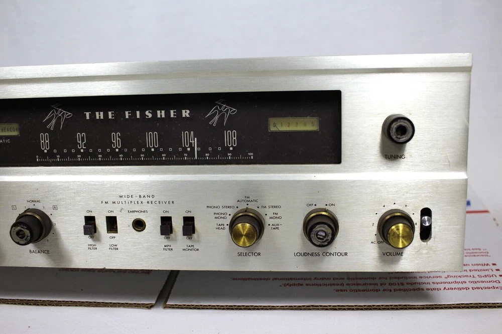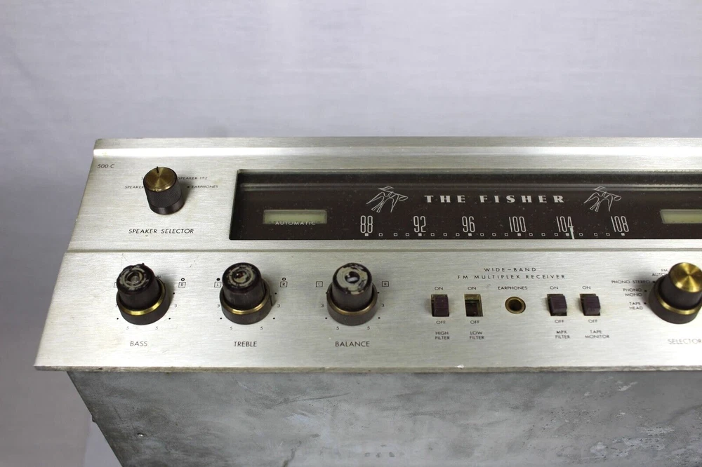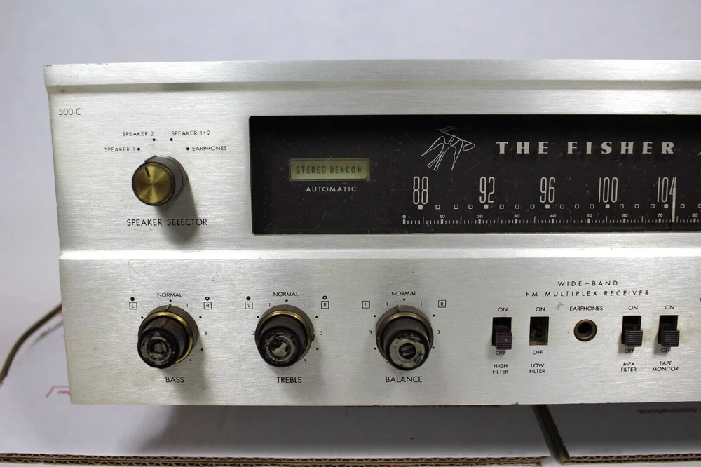 UP FOR SALE NOT WORKING Fisher 500-C Stereo Tube Receiver AS-IS For Parts or Repair Only THIS ITEM DOES NOT POWER ON AT ALL IT IS TOTALLY DEAD. THIS ITEM IS BEING SOLD AS-IS: NO RETURNS OR REFUNDS ACCEPTED THIS IS A FINAL SALE. IF YOU DO NOT AGREE WITH THE TERMS AND CONDITION OF THIS ITEM PLEASE DO NOT PURCHASE OR MAKE AN OFFER ON IT. I PLUGGED IT IN AND I DID NOT SEE ANY SIGNS OF LIGHTS IN ANY TUBES AT ALL. THATS ALL I CAN TELL ABOUT THIS UNIT. I DID NOTICE THAT THERE IS A KILL "SWITCH" OR A "ON & OFF SWITCH" ON THE RIGHT SIDE OF THE UNIT NEAR THE VOLUME KNOB, I DO NOT KNOW WHAT IT’S PURPOSE IS, SOMEBODY MADE THAT SWITCH BECAUSE I HAD ONE AND SOLD IT AND IT DID NOT HAVE THAT SWITCH ON THE RIGHT SIDE OF THE UNIT. ONCE AGAIN I DO NOT HAVE ANY CLUE WHY SOMEBODY MADE THE SWITCH OR IT'S PURPOSE. ALSO IT'S MISSING TWO TUBES and I DO NOT KNOW IF THE REST OF THE TUBES ARE GOOD OR NOT. THE "LOW FILTER" SWITCH IS BROKEN. FIVE GOLD CAPS ARE MISSING FROM THE SWITCHES AS PICTURED. THE INTERIOR IS VERY DUSTY AS PICTURED. THIS RECEIVER DOES NOT HAVE A LID/TOP OR CABINET. NO CABINET . THE CONDITION THAT IS PICTURED IS THE CONDITION THAT YOU WILL RECEIVE THIS ITEM IN. TO BE SAFE WHEN I WILL SHIP THIS UNIT I WILL REMOVE ALL THE TUBES AND I WILL PACK AND SHIP THE TUBES IN A SEPARATE BOX FOR FREE TROUGH USPS. NOT WITH THE STEREO. I DID SEE THAT SOME TUBES HAVE BEND PINS. IF YOU ANY QUESTIONS ABOUT THIS ITEM OR NEED ADDITIONAL PICTURES PLEASE FEEL FREE TO CONTACT ME ANYTIME. WHAT IS PICTURED IS EXACTLY WHAT YOU WILL RECEIVE. THANK YOU VERY MUCH FOR LOOKING AT THIS ITEM.
