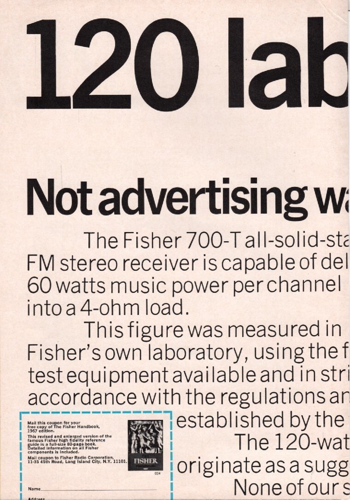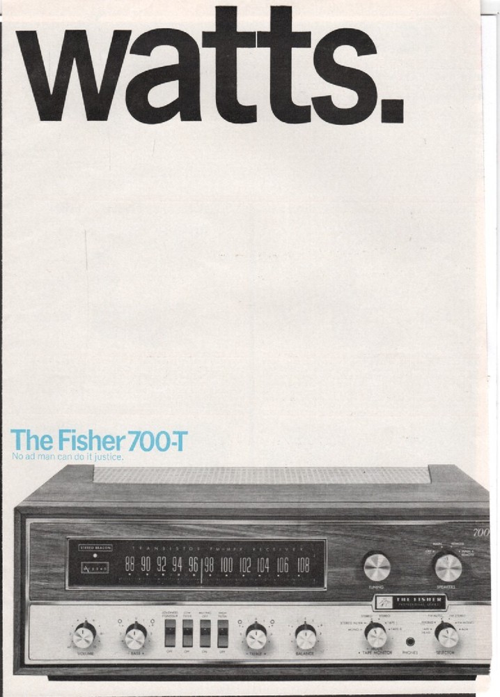 Fisher - 700-T Receiver - Original Magazine Ad - 1967 Very good Condition. (Lot# - AUD-29-20) Shipping to the U.S. is 3.65 - International shipping - Ebay international shipping program Payment is by ...