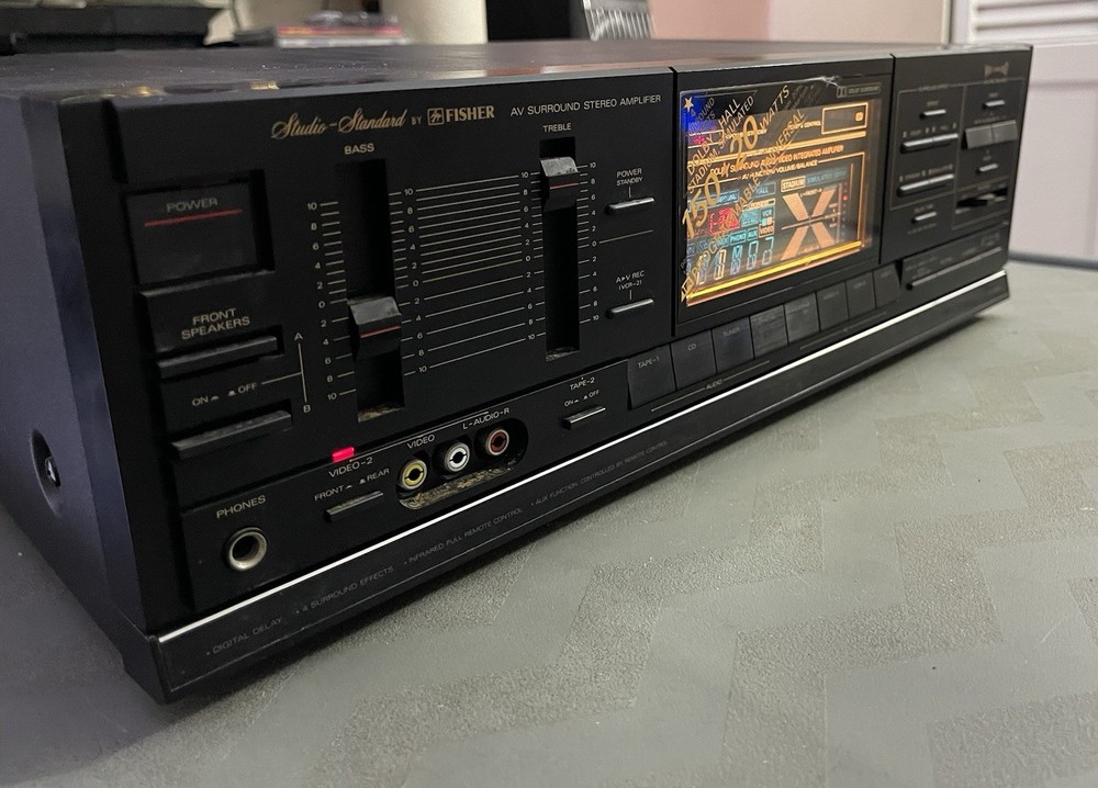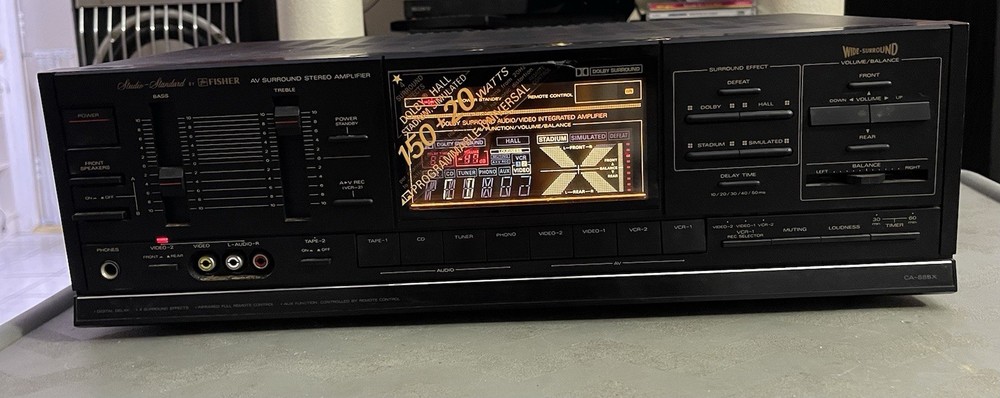 Beautiful, Elegant, Dynamic, Sounds high end; This amp has never been hit, never dropped, and never been broken. The entire lighting system still shines and all turn on. You can connect up to 6 baffles to the theater system. Cosmetically I give it a C; ,, This Fisher 888X series amplifier, I have looked for it on various hi-fi sales walls and I can't find it, I don't think there are many for sale. No remote control . . The entire operating system of the Amplifier works very well and has a powerful power. ..I'm noticing that it seems the right channel sounds a little quieter than the left channel. I'm not an expert but it seems the balance control is dirty or I don't know what it is. Well, Enjoy it before and after buying it. Thank you very much. God bless you.