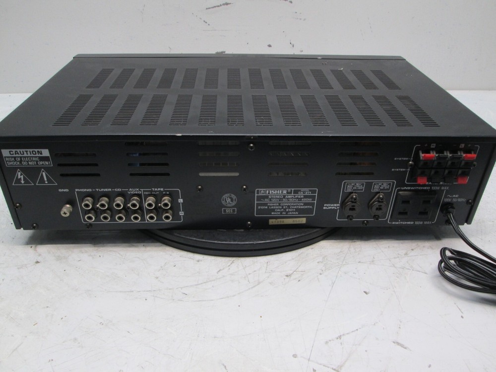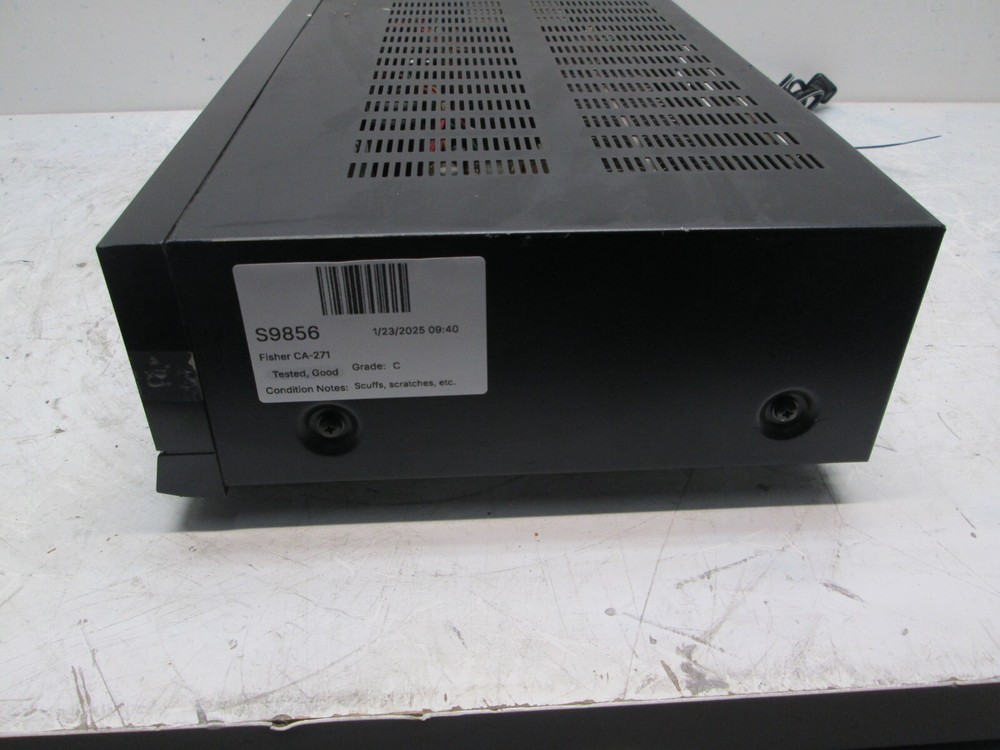 Fisher CA-271 Receiver - Tested Condition Grade: C Functional Grade: A This item has been tested to power on and play audio on our test bench. To our knowledge, it is in good working order. There are some marks and wear on the casing from general use. See pictures for further details. No further testing has been performed. Shipping Disclaimer: We do our best to ensure that our items arrive safely. Sometimes, however, they do sustain shipping damage. In the unlikely event that this happens to your item, please contact us immediately, and we will resolve the situation for you. Accessories Included: Power Cable: Not Included Remote: Not Included Other Accessories: Not Included Terms of Sale: Please email any questions prior to bidding. Please allow up to one business day for a reply. We do not ensure compatibility with various accessories, software, or other hardware. Please do your own research before purchasing. Our business hours are Monday-Friday 8:00AM-4:00PM CST. Note that sales tax may be applicable depending on buyer location. Be sure to check your shipping address. We are not responsible for items shipped to an old, incorrect, or invalid shipping address. Local pickup is only an option for our freight listings. We are otherwise not open to the public.