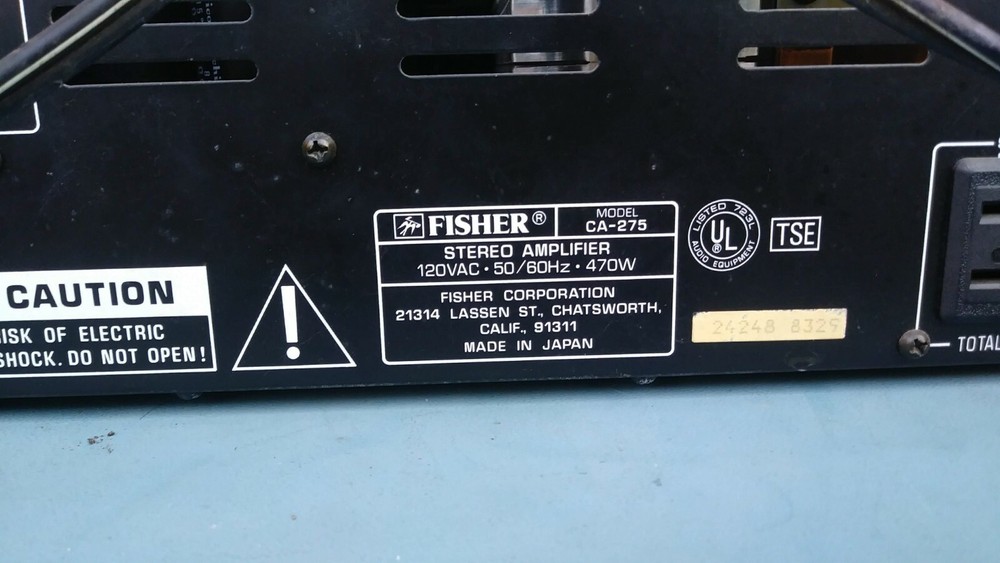Parting Out good working Fisher CA-275 Amplifier Please Write what part you need. Our goal is your 100% customer satisfaction We Do Not consider our transaction complete, until we know You are fully satisfied with your item! If you are satisfied with your order, please leave us positive feedback If you are not 100% satisfied, please contact us right away We'll solve any problems with the order that are the results of our error to ensure your 100% satisfaction. We're only human after all Track Page Views With Auctiva's Counter