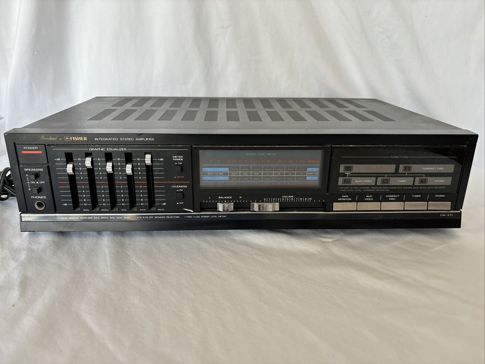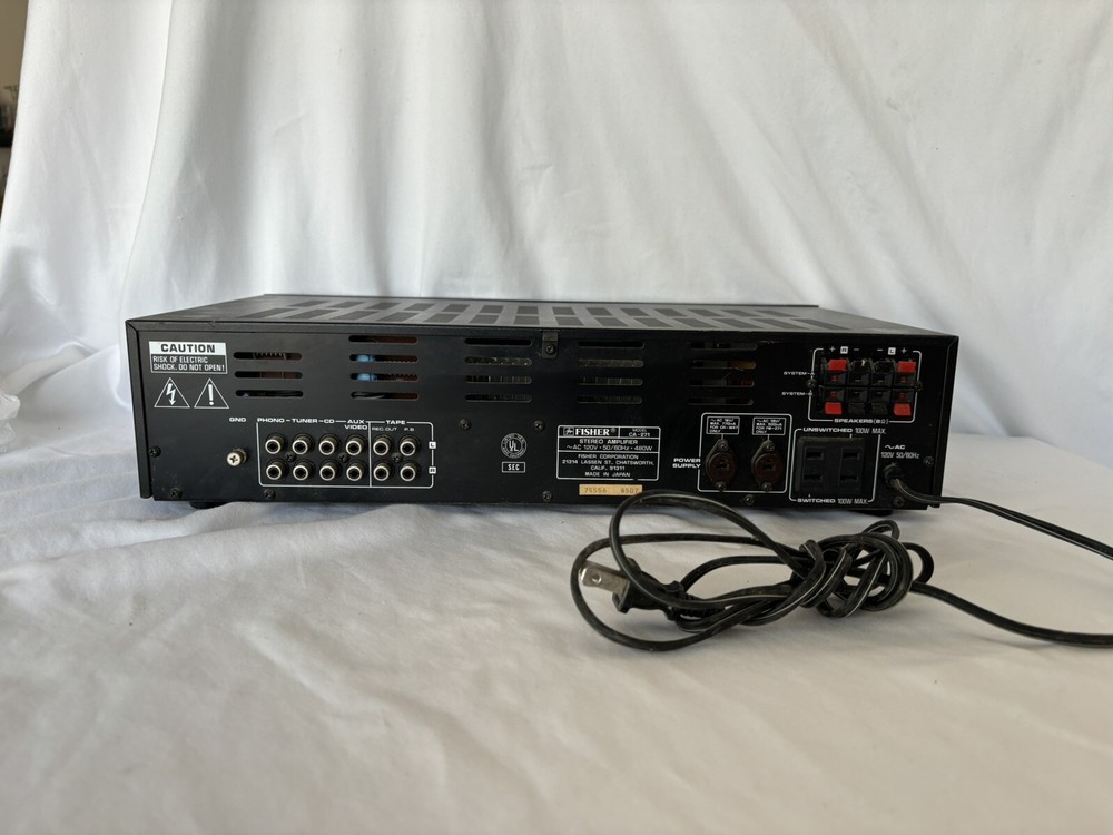 Powers on, Untested This Fisher CA-283 Integrated Stereo Amplifier Receiver is ready to enhance your listening experience. Designed to provide crisp, clear sound, it is perfect for enjoying your favorite music or movies. With its sleek, compact design and quality construction, this receiver is a great addition to any home audio setup. This unit does not come with a remote, but it powers on seamlessly and is sure to deliver the high-quality sound that you expect from a Fisher product. With a focus on performance and reliability, this receiver is a great choice for anyone who wants to upgrade their audio setup without breaking the bank. Don't miss out on this opportunity to improve your listening experience!
