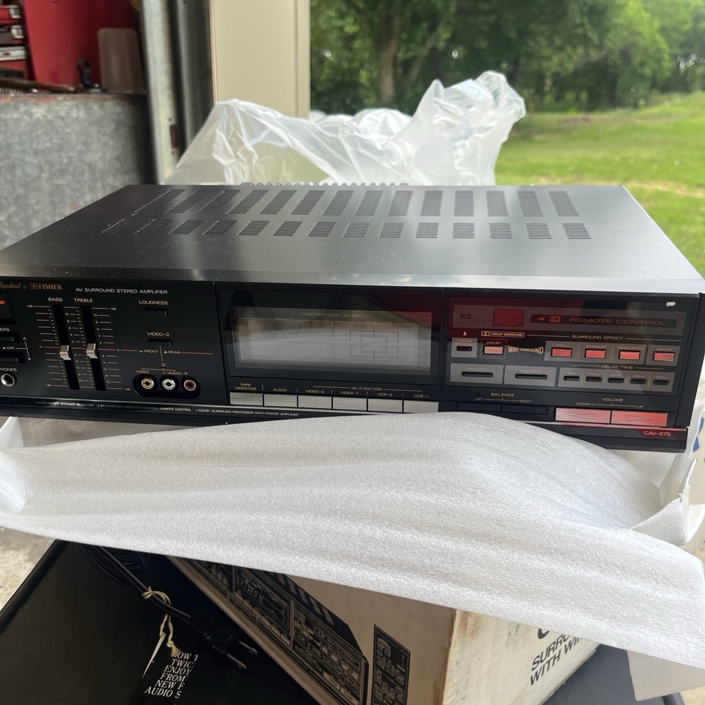 This unit has been in a controlled storage unit for 20 years. Besides its new condition I know nothing about it. I plugged it in - the lights came on / that’s the extent of my knowledge. I’m selling as is but there’s a strong bet it’s perfect. Box says there’s a remote but does NOT have one. The Fisher Cav875 Amplifier is a brand new home audio component from Fisher, known for its quality and performance in the world of audio devices. This amplifier is designed to enhance the sound quality of your stereo system, providing clear and powerful audio output for an immersive listening experience. Whether you're looking to upgrade your current setup or build a new one from scratch, the Fisher Cav875 Amplifier is a reliable choice for any audiophile.