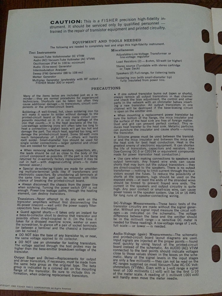 Perfect! Excellent seller. Fast shipping well packed and exactly as described. I highly recommend this seller. The manual is original with all needed schematics. Now I can get started on restoring this receiver!