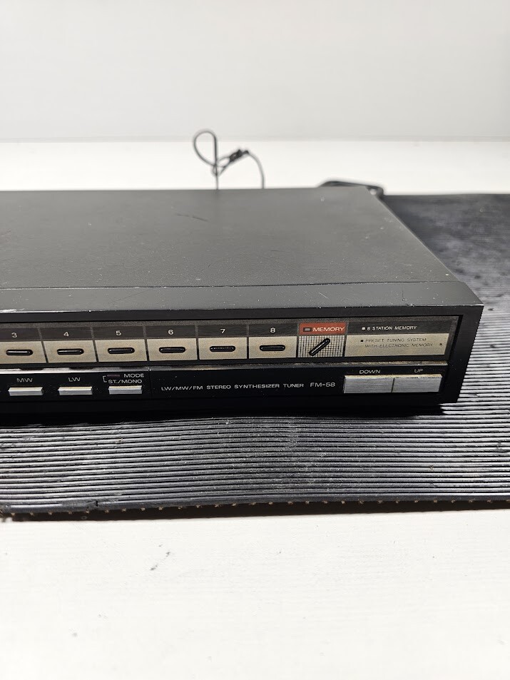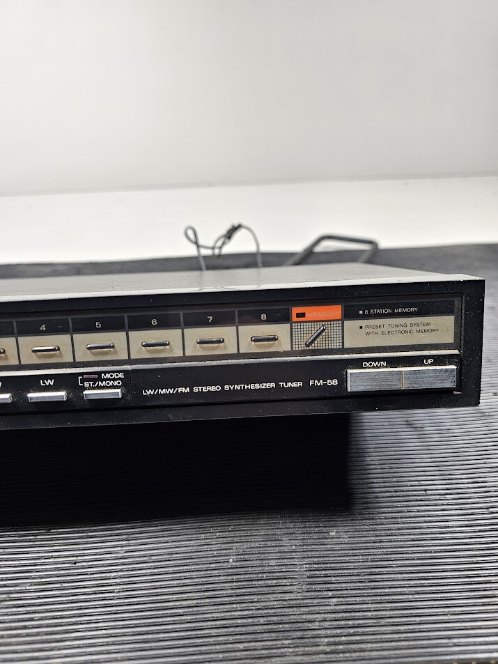 Fisher FM-58 Stereo Tuner - Working, Used, Vintage Audio The Fisher FM-58 Stereo Synthesizer Tuner offers vintage audio enthusiasts a classic design paired with reliable performance. This model is known for its LW/MW/FM tuning capabilities, allowing users to enjoy a broad range of radio frequencies with precision. Its 8-station memory function enhances convenience, making it easy to switch between favorite stations. Ideal for collectors or anyone seeking a retro audio experience. While the unit is used and shows signs of wear, such as minor scratches, it remains fully operational. The FM-58's sleek design and intuitive controls make it an excellent addition to any home audio setup. Perfect for vintage audio collectors and those who appreciate the nostalgic touch of classic radio tuning. This tuner is a testament to Fisher's commitment to quality audio products. All items will usually be shipped within 3 business days of receiving cleared payment (excludes weekends and holidays). If you have some questions, feel free to ask and if you are not satisfied with your purchase before opening a case on Ebay, please contact us and we will try to resolve your issues as quickly as possible. Multiple items on one of the listings? If you see that we have multiple quantities of the same item in a photo, please note that it is representative of what you will receive. There may be slight variations in condition between the pictured item and the one you receive. For example, the scratches and dents may differ. Return Notes: 1. For items listed as "working" condition: Returns due to "changed mind," "doesn't fit," or other buyer’s remorse reasons are accepted, but the buyer is responsible for return shipping costs. 2. For items received damaged or not as described: If the item arrives damaged or does not match the listing description, we will cover the return shipping costs. Supporting photos or video evidence must be provided before the return is approved. Please contact us immediately with the details and your order number to resolve the issue efficiently. 3. For items listed as "For parts or not working": Returns are not accepted, as these items are explicitly described as non-functional or for repair purposes only. Buyers acknowledge this condition at the time of purchase. 4. General return guidelines: Items must be returned in the same condition as received, including all original packaging and accessories (if applicable). Returns must be initiated through the eBay Returns Center and include a valid return reason. For corporate or small business customers: If you require an invoice for your purchase, please specify this in the buyer's notes section or reach out to us.