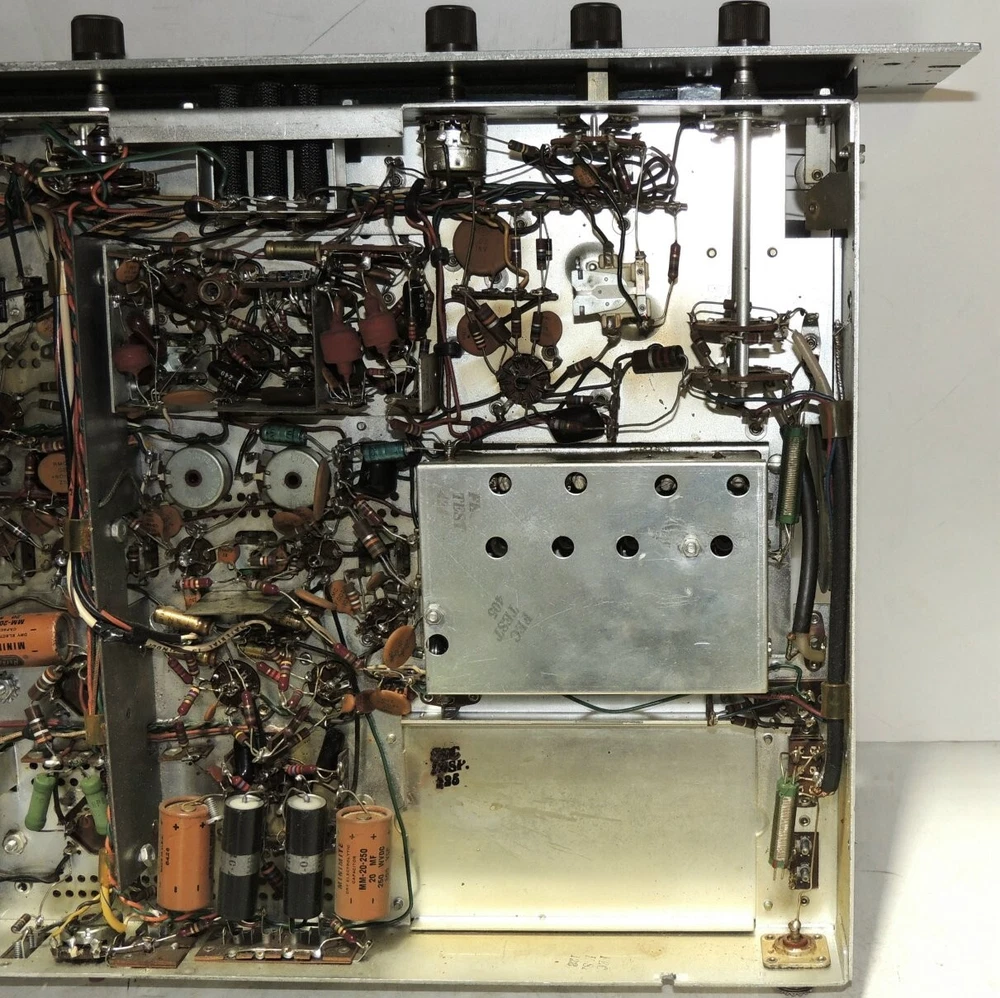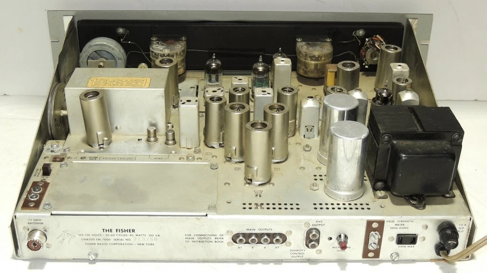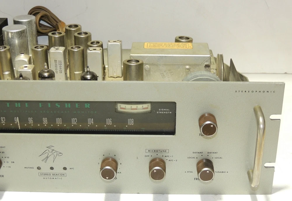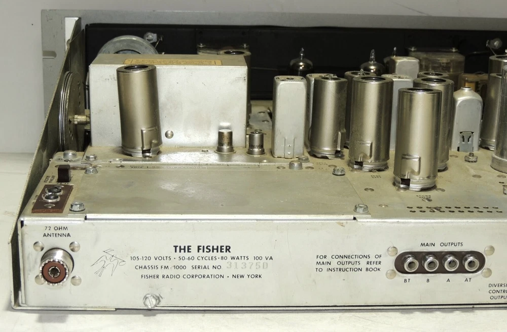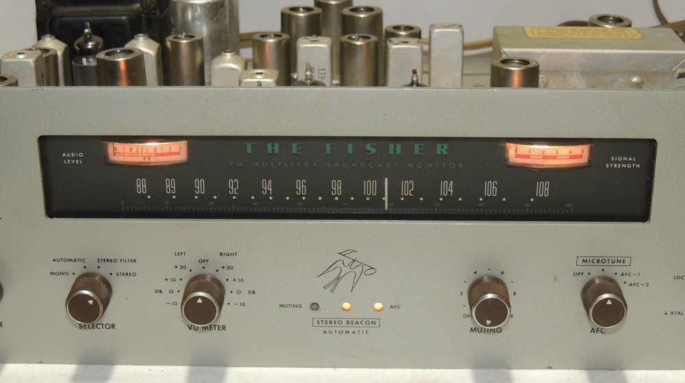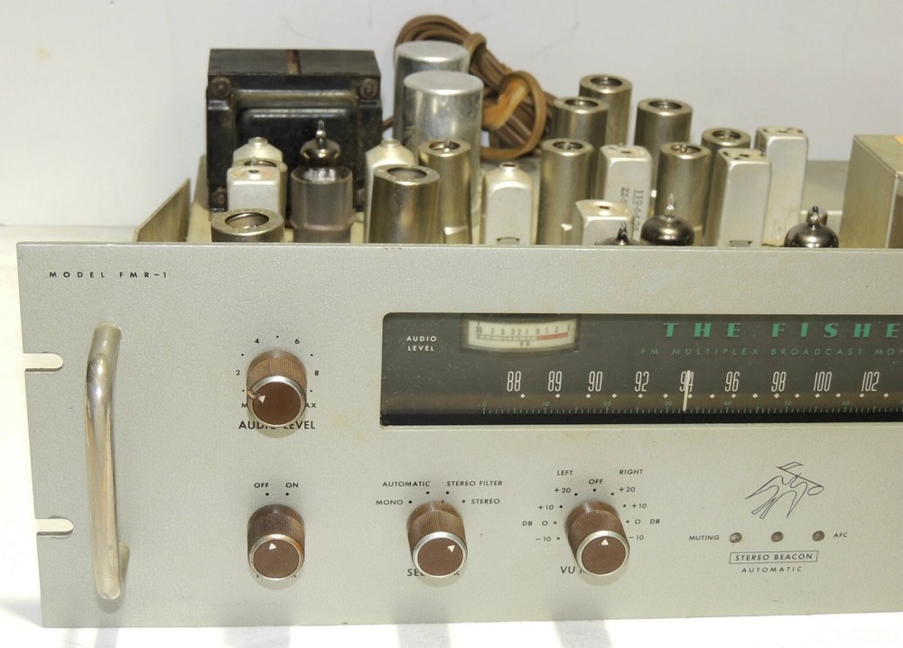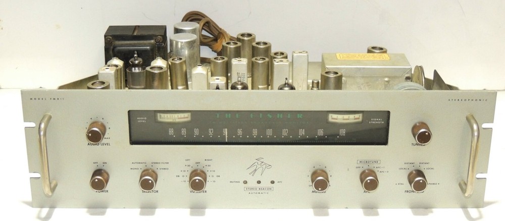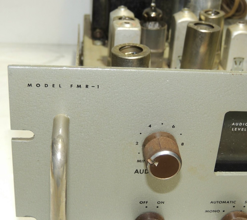 Fisher FMR-1 Stereophonic Broadcast FM Tuner. Serial #31375D. Measures 19" x 5 1/4" x 15". Net Weight 24.0 lbs/10.9kg. The HOLY GRAIL!!! A Fisher FMR-1! A Fisher FMR-1!! A total of 16 tubes in this incredible tuner. Tubes are 2x12AT7, 1x12AX7, 1x6BL8, 5x6AU6, 1x6BN7, 2xEF86/6287 & 4x6DJ8. Mix US tubes lot. Definitely a super rare breed of Broadcast FM Tuner quality only few can own. This one is in exceptional condition. All Stock and Original with the exception of a few replacement tubes like 12AX7 and 12AT7 to US types. Fully tested and works. A few little tiny flaws like missing the front colorful jewels. These can be bought here frequently. Also somehow the Right strength meter does not move when it picks up FM station. Other meter works. "A Masterpiece in design and circuitry, created for the audio connoisseur seeking the absolute ultimate in fM Stereo Tuner, regardless of cost". Deservingly so for the discerning ear. Please see all pictures above. Truly an incredible Fisher Masterpiece. Thank You and Good Luck : ) : )