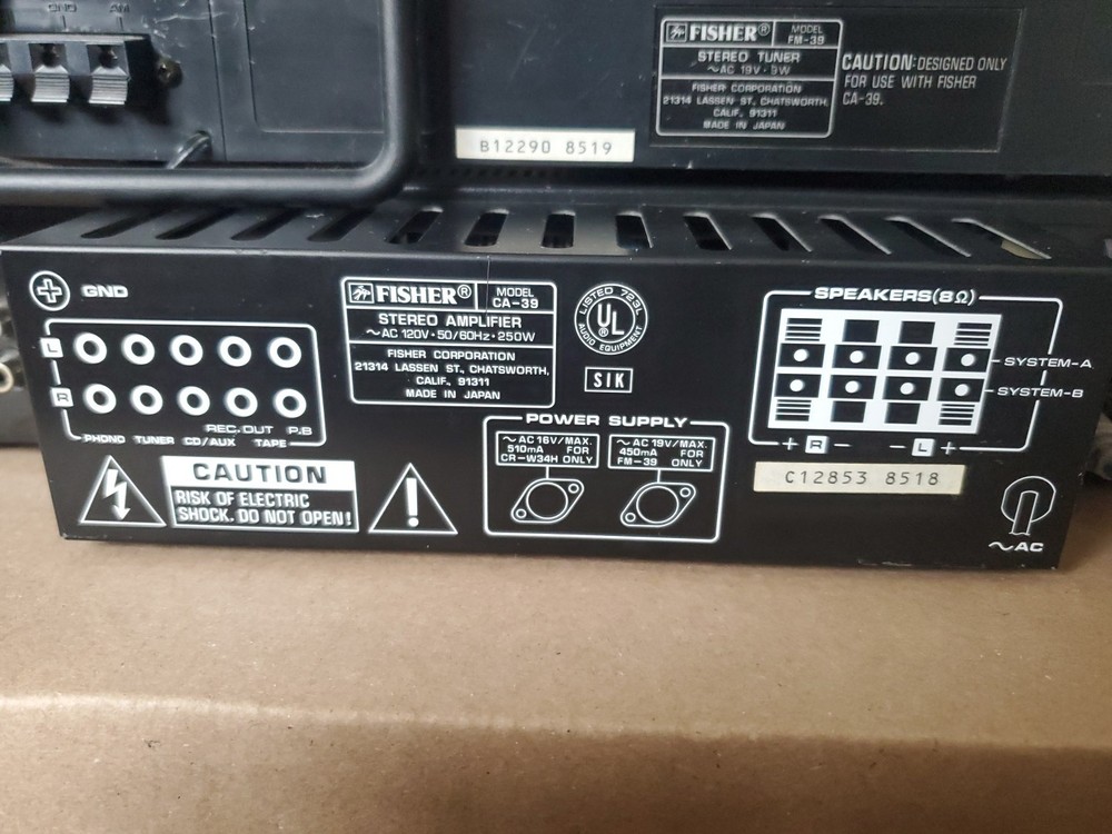 Fisher Integrated Stereo Amplifier / Tuner / Duel Cassette Player / "UNTESTED". Condition is For parts or not working. Shipped with USPS Ground Advantage.