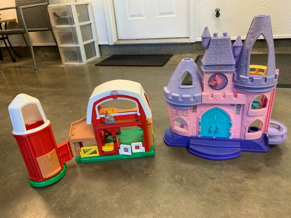 You get what you see in the 1st 6 pictures. picture #7 is back of castle & barn. Free shipping....