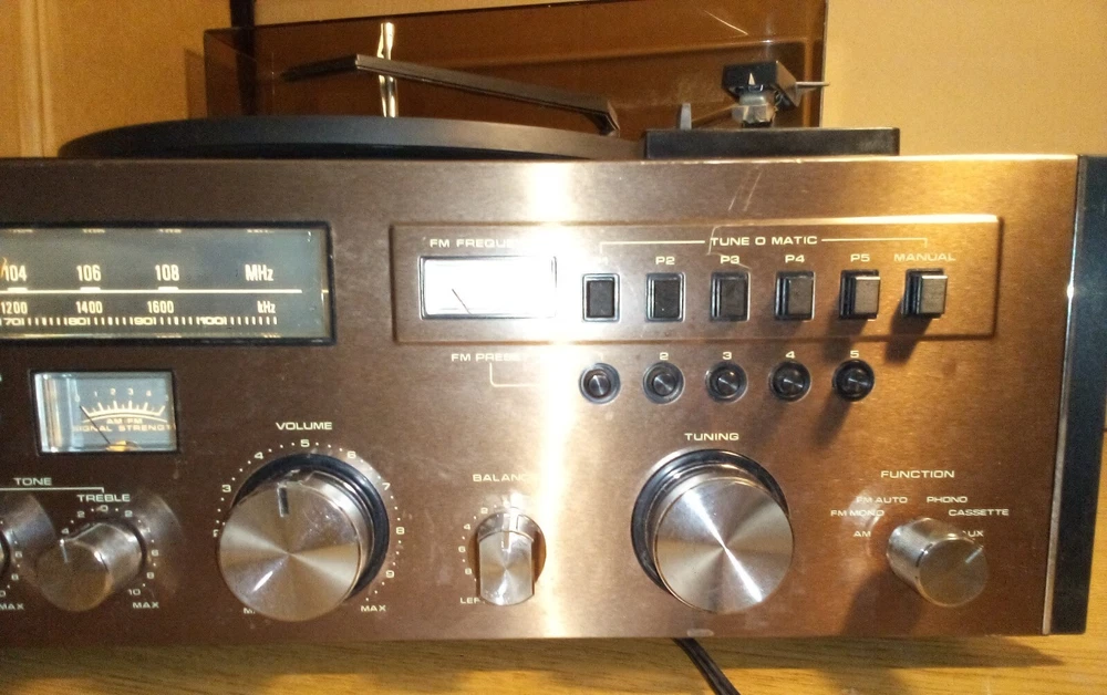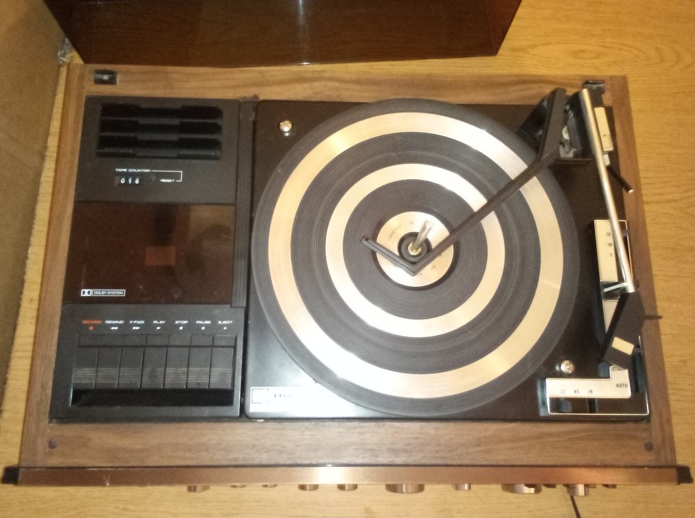 Nicely kept multi system. The selector knob takes a jiggle or two to lock onto the "cassette" setting. Turntable: direct drive; plays records, sounds good. Issues: if turntable starts on cue, it needs to be rotated a few turns by hand to complete the auto cycle to begin rotating freely. If started on start only - no rotating is needed. After sitting unused awhile, the little wires you can see underneath the stylus need to be jiggled to send audio equally from the needle to amp. Tape: heads cleaned, demagnetized, plays tapes, sounds good. Use caution with old or sticky tapes, otherwise no problem. Tuner: Excellent. Aux: working (allows you to plug a phone or external device and play through this stereo). One VU meter light is out. All meters work. +$10 insurance. Notes: to me, it's surprisingly well-built to just get up and go after over 45 years. Quite loud, as well.