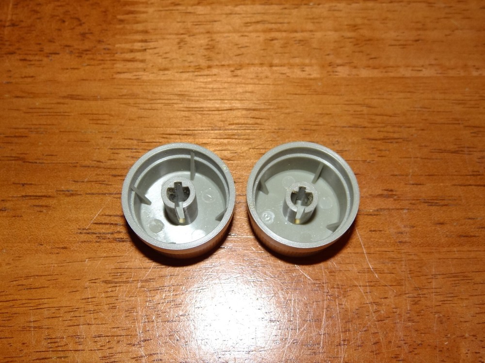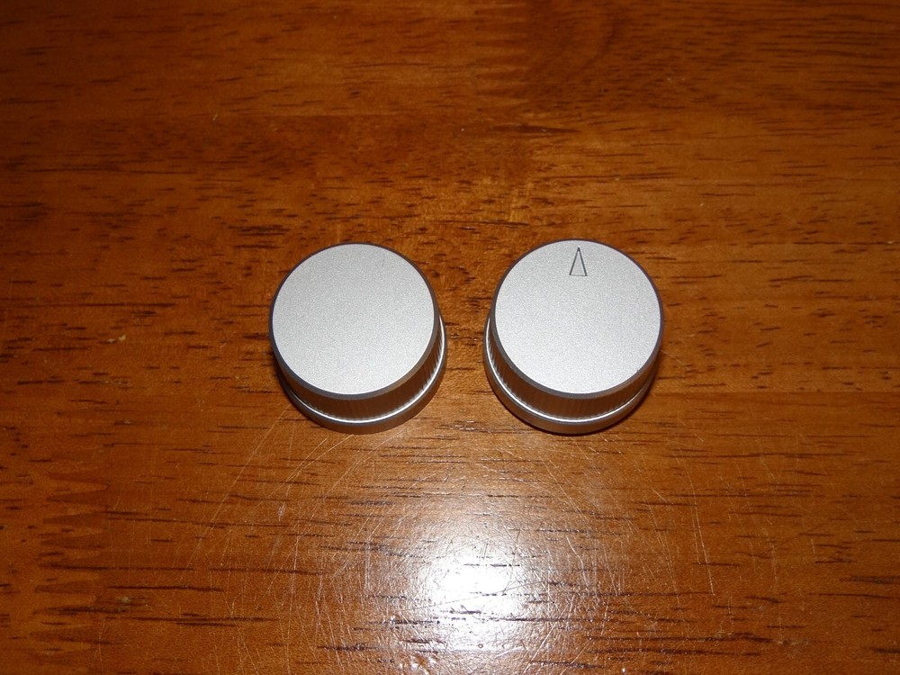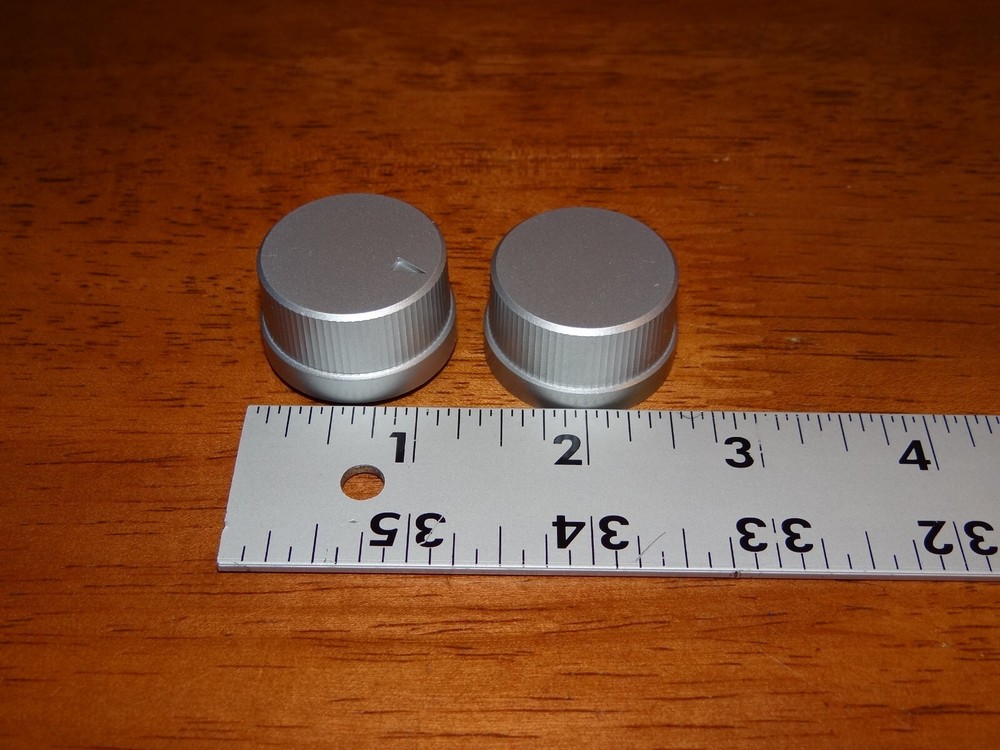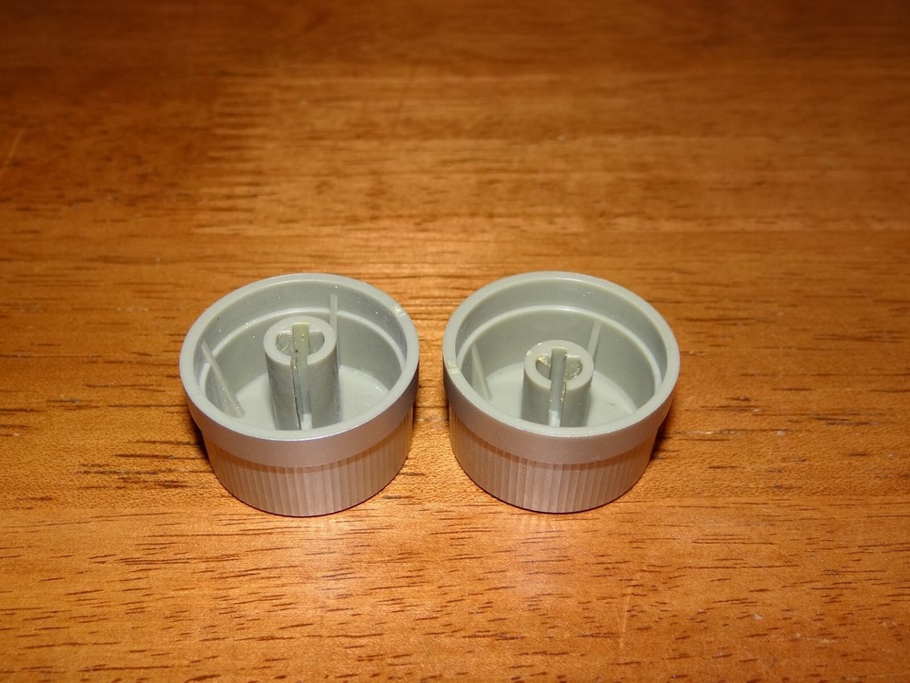 Set of 2 plastic knobs in excellent shape. Original Fisher knobs. From model MC708. 1-3/16" diameter. Pictures show actual items for sale. Thanks for looking!