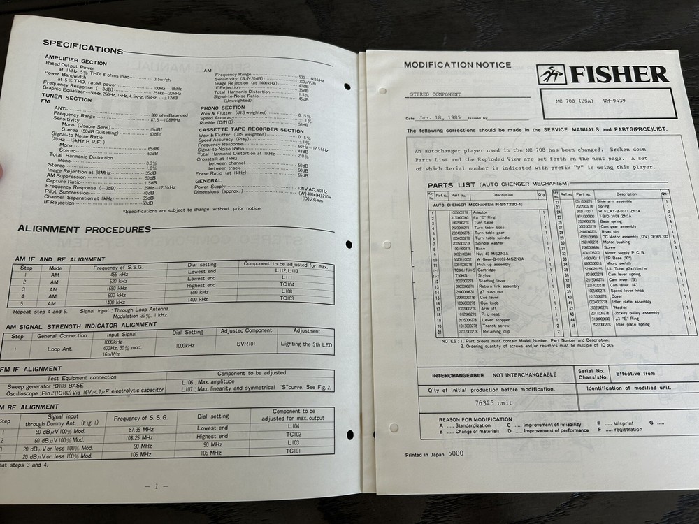 Fisher MC-708 Vintage Stereo System Service Manual – Turntable & Cassette Repair Guide OEM