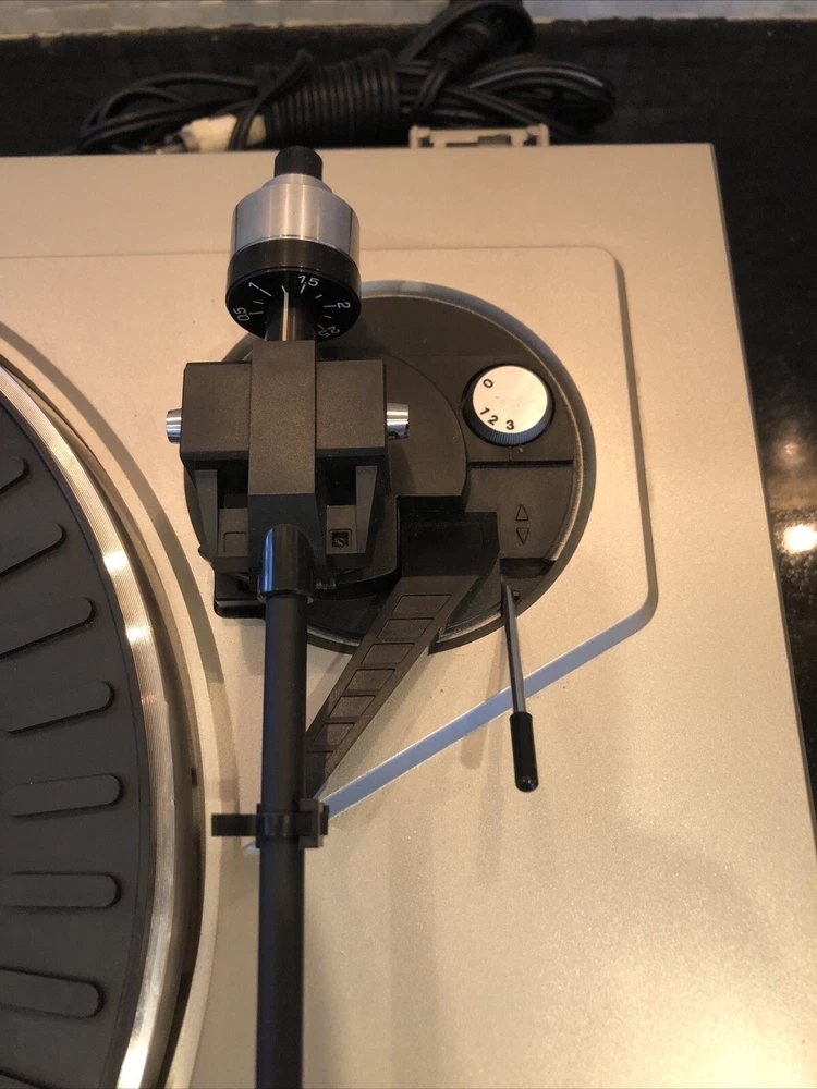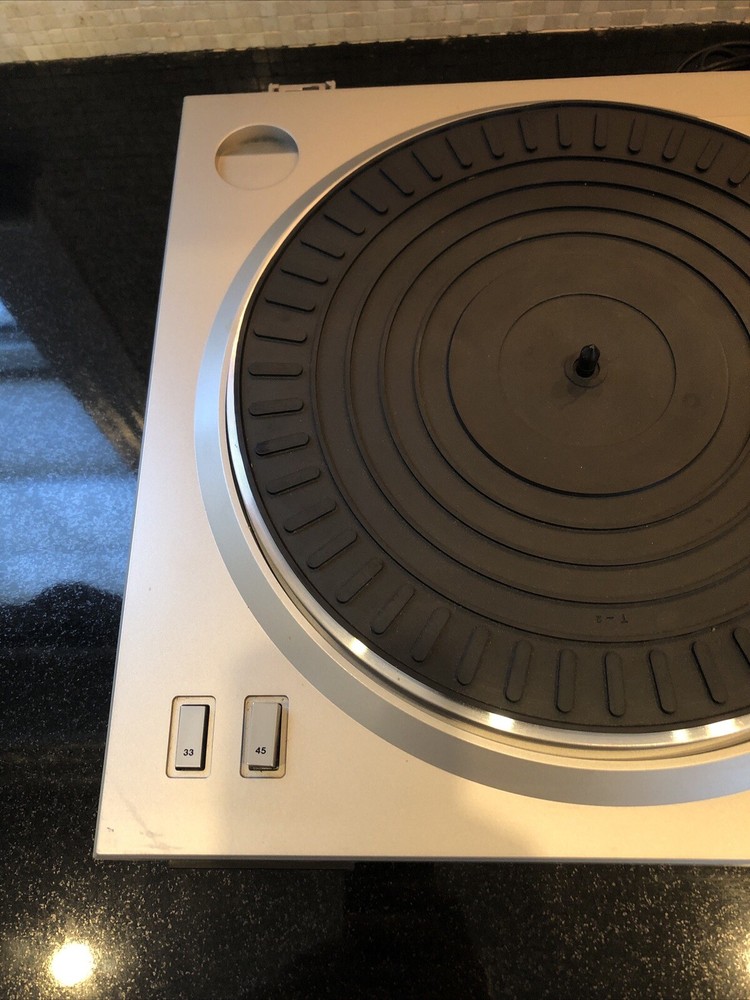 Type: fully automatic Motor: 120 pole linear quartz phase locked loop Drive system: direct drive Wow and flutter: 0.03% Rumble: 70dB Speed control range: +-6% (quartz lock off) Platter: 12-15/16 inches 2.2lbs Speeds: 33 and 45rpm Perfect Working Condition.