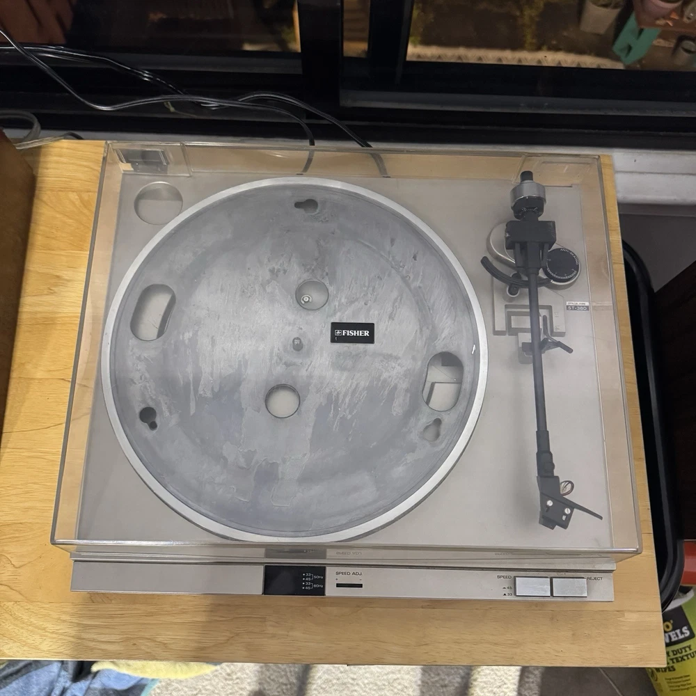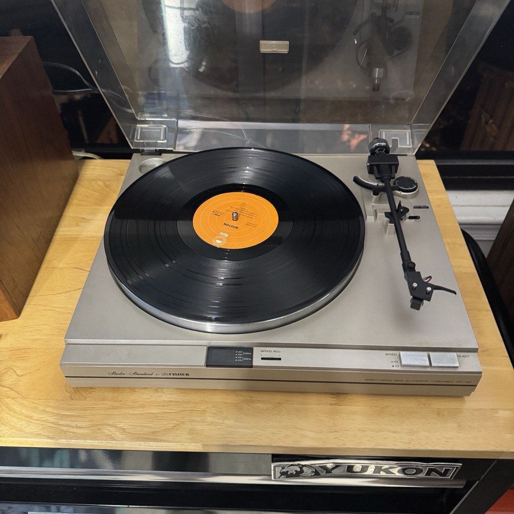 Fisher MT-125 Studio Standard Turntable 2-speed Direct Drive w/ Dust Cover Good overall condition - missing a hinge at the moment for the dust cover, looking for a replacement - includes cartridge *NOTE: While we have a lot of experience shipping turntables and Electronics - we are always open to suggestions. For Turntables - the Dustcover will packed in a separate box within the main box and will include the Headshell & Cartridge, Counterweight, and Platter with slipmat. The tonearm will be secured to the rest and the Plinth will either be packed in Custom Foam, Bubble Wrap or Both. The Boxes we use are heavy duty and are typically new, unless we come across the original box or similar.