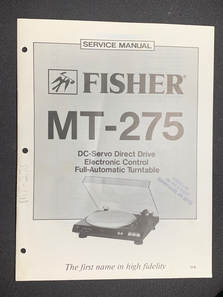 I am selling a Fisher MT-275 Service Manual DC- Servo Direct Drive Electronic Control Full Automatic Turntable Original.. Item was used at a repair center .. Item will be shipped USPS First Class or Media Mail..