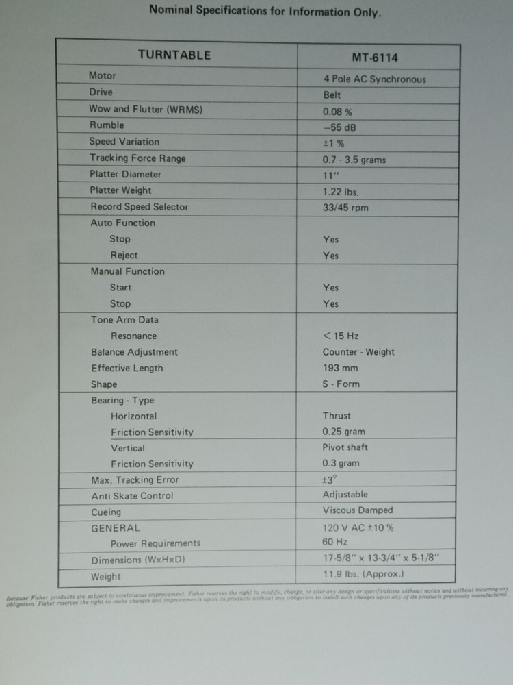 I am selling a Fisher MT-6114 Service Manual Semi Belt Drive Automatic Stereo Turntable Original.. Item was used at a repair center .. Item will be shipped USPS First Class or Media Mail..