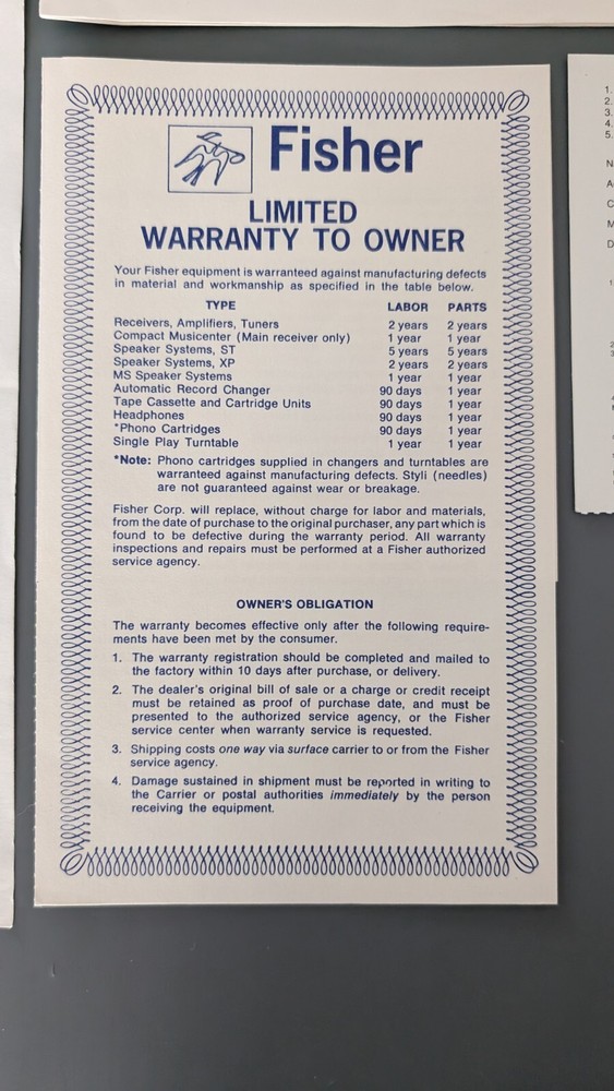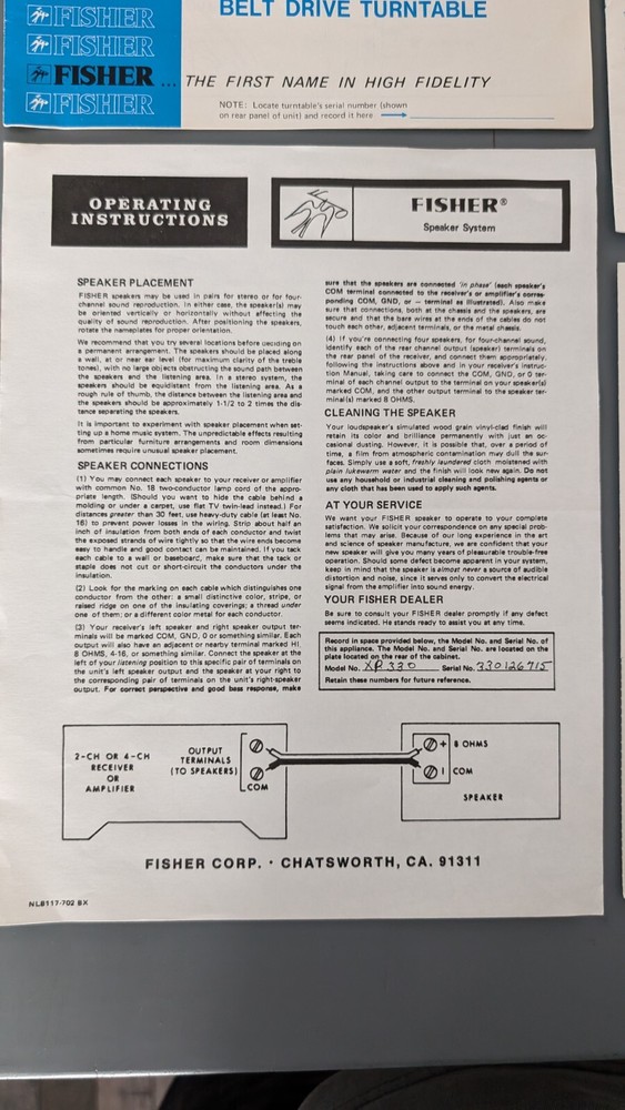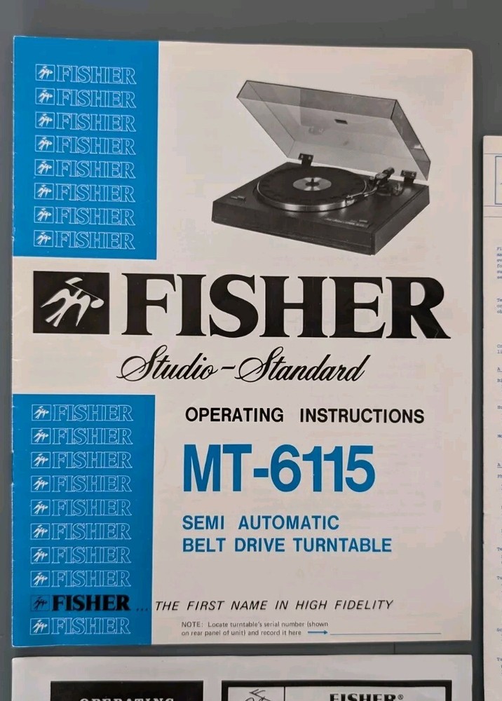 This is a vintage Fisher MT-6115 record player turntable that comes with its original owner's manual and operating instructions. The manual provides detailed information on how to use and maintain the turntable, while the operating instructions cover the basics of getting it up and running. The brand of this turntable is Fisher, and it falls under the categories of Consumer Electronics, Vintage Electronics, Vintage Audio & Video, Vintage Parts & Accessories, and Vintage Manuals. It is a great addition to any vintage audio collection and a must-have for those who want to enjoy their vinyl records.