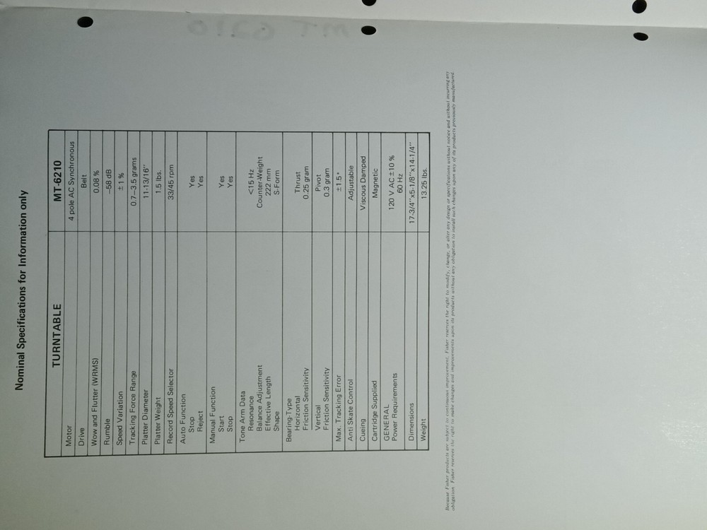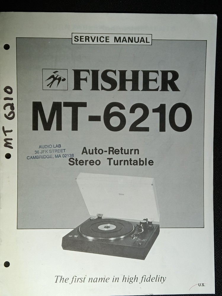 I am selling a Fisher MT-6210 Service Manual auto Return Stereo Turntable Original.. Item was used at a repair center .. Item will be shipped USPS First Class or Media Mail..