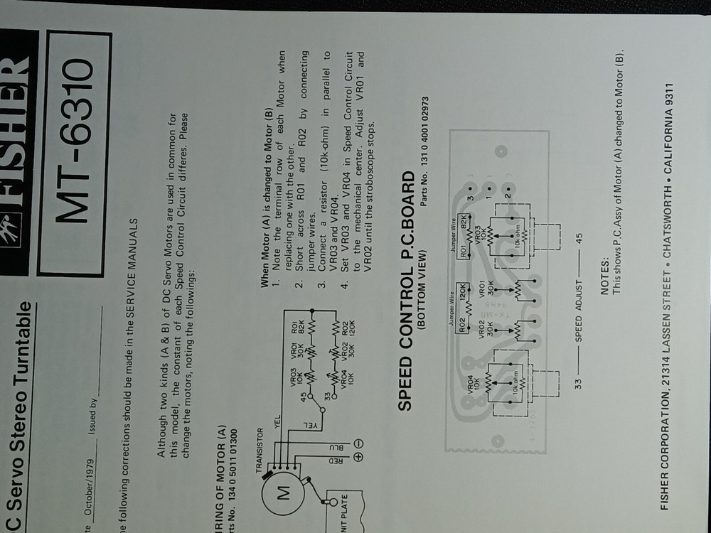 I am selling a Fisher MT-6310 Service Manual DC Servo Stereo Turntable Original.. Item was used at a repair center .. Item will be shipped USPS First Class or Media Mail..