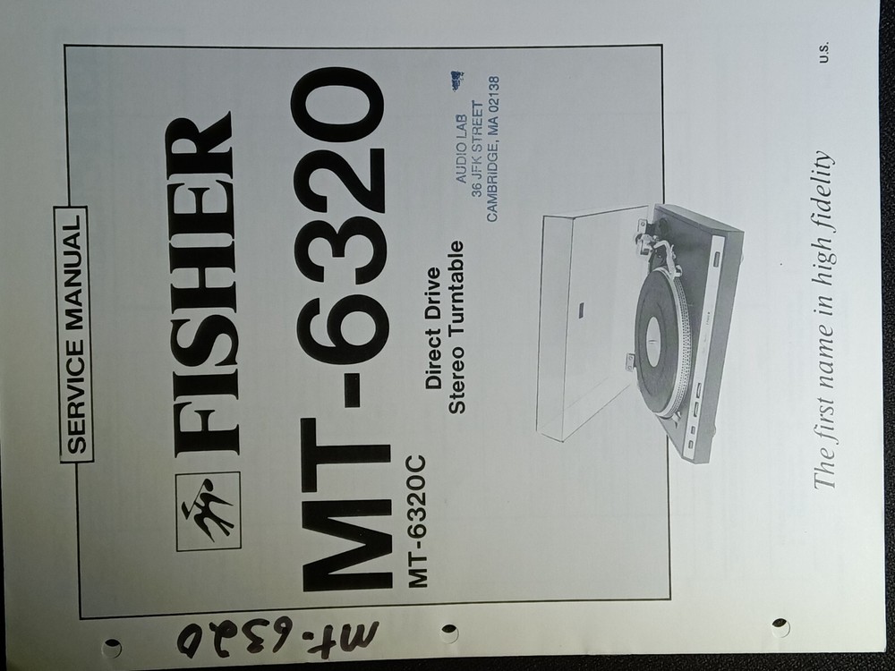 I am selling a Fisher MT-6320 MT-6320C Service Manual Direct Drive Stereo Turntable Original.. Item was used at a repair center .. Item will be shipped USPS First Class or Media Mail.....