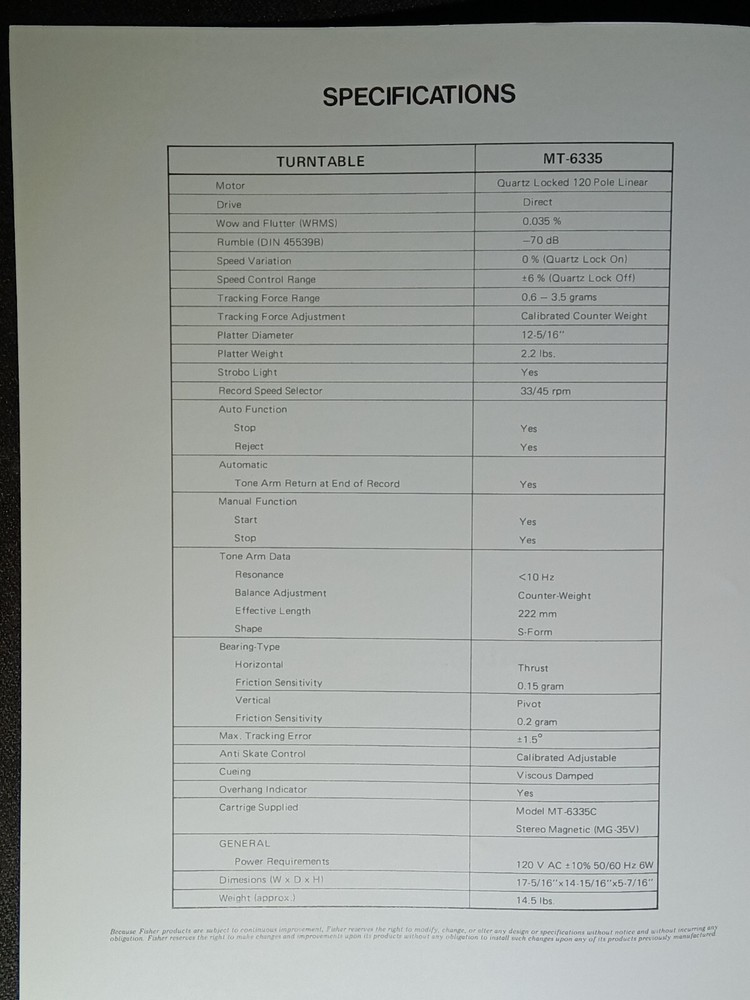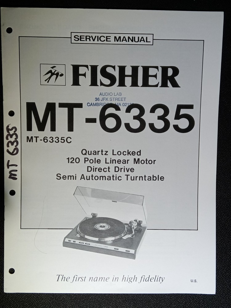 I am selling a Fisher MT-6335 MT-6335C Service Manual Quartz Locked 120 Pole Linear Motor Direct Drive Semi Automatic Turntable Original.. Item was used at a repair center .. Item will be shipped USPS First Class or Media Mail..