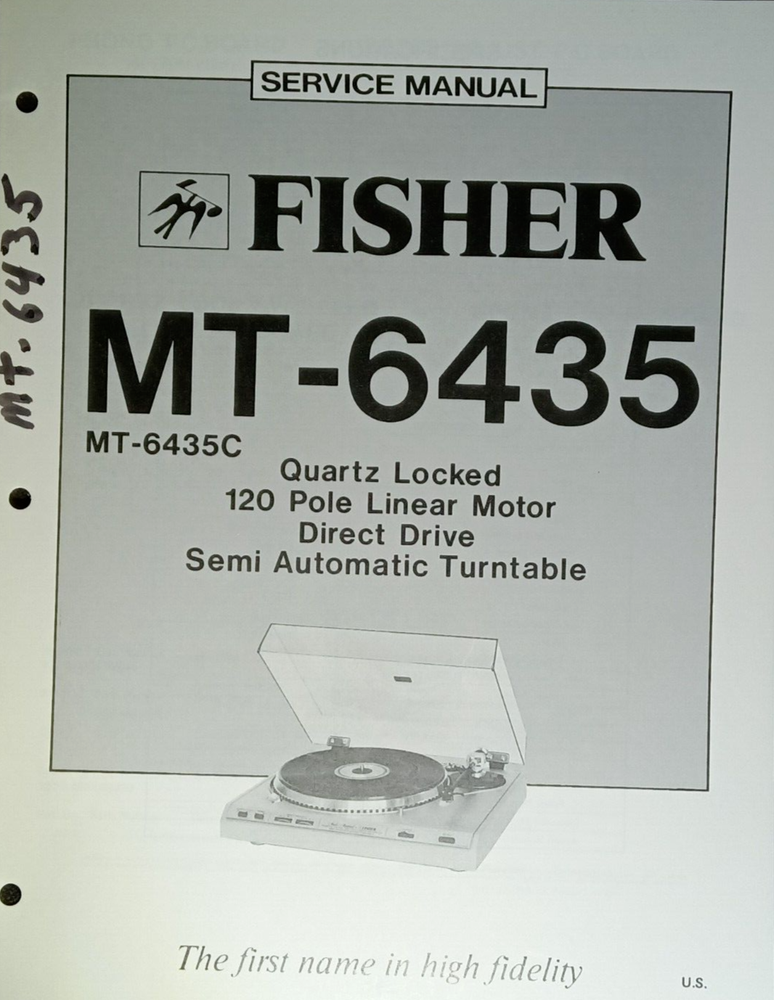 I am selling an Original Fisher MT-6435 MT-6435C Service Manual.. Item was used at a repair center .. Item will be shipped USPS First Class or Media Mail..