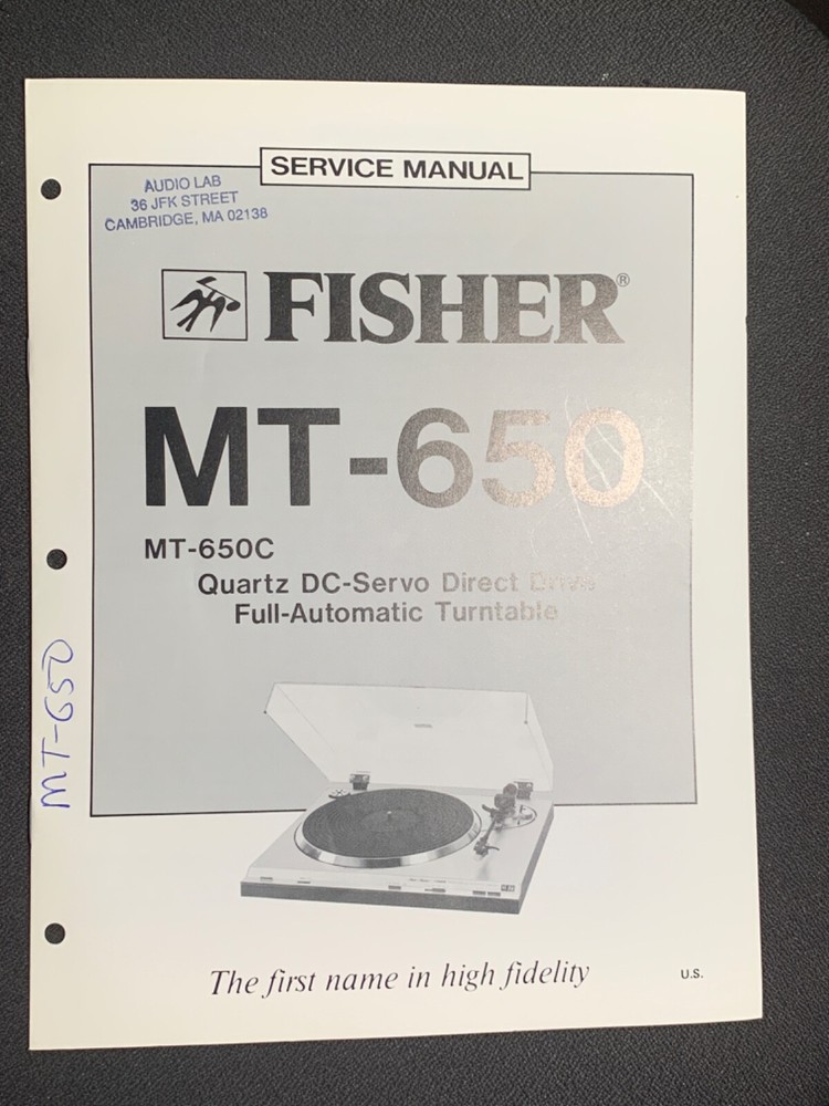 I am selling a Fisher MT-650 650C Service Manual Direct Drive Full Automatic Turntable Original.. Item was used at a repair center .. Item will be shipped USPS First Class or Media Mail..