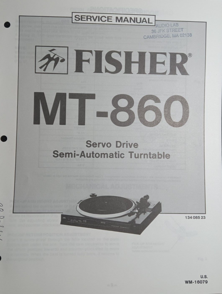 Im selling a Fisher MT-860 Service Manual Servo Drive Semi-Automatic Turntable Original.. Item was used at a repair center .. Item will be shipped USPS First Class or Media Mail.....