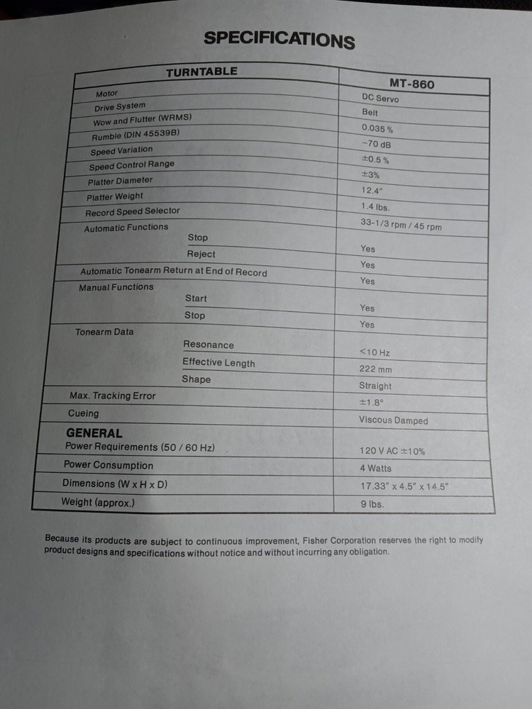 Just got this Fisher MT-860 service manual—total game-changer for DIY repairs! Original, well-preserved, and packed with clear diagrams and troubleshooting tips. Shipping was fast and hassle-free. Perfect for collectors or techs restoring vintage turntables. A must-have if you own this model—super detailed and easy to follow. Highly recommend!