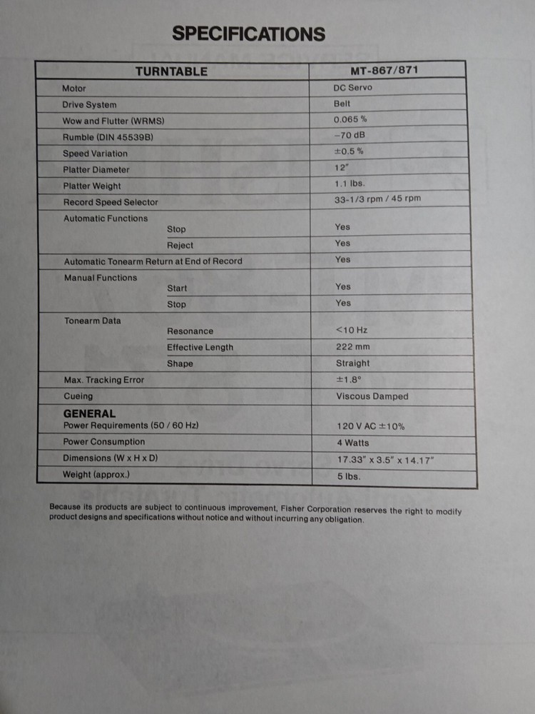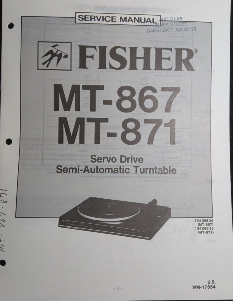 I am selling a Fisher MT-867 MT-871 Service Manual Servo Drive Semi-Automatic Turntable Original. Item was used at a repair center .. Item will be shipped USPS First Class or Media Mail.....