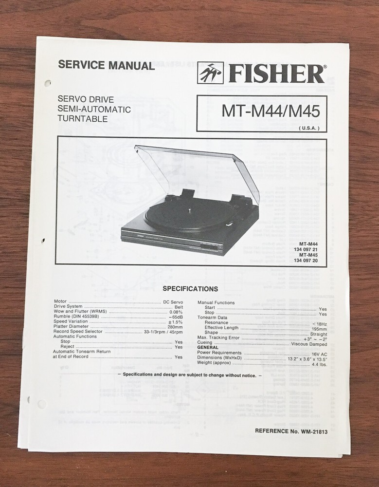 Fisher MT-M44 & MT-M45 Turntable Service Manual – Original Guide