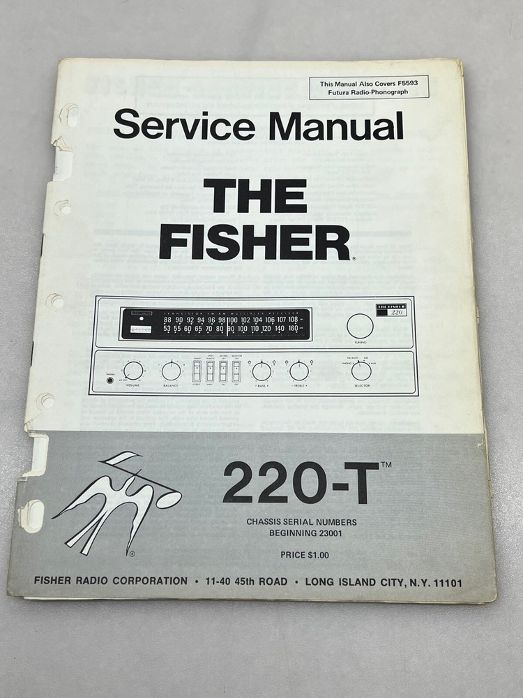 Up for sale 1 Used Original Service Manual for a Fisher Model 220-T Transistor FM-AM Multiplex Receiver. Free Shipping !!!...
