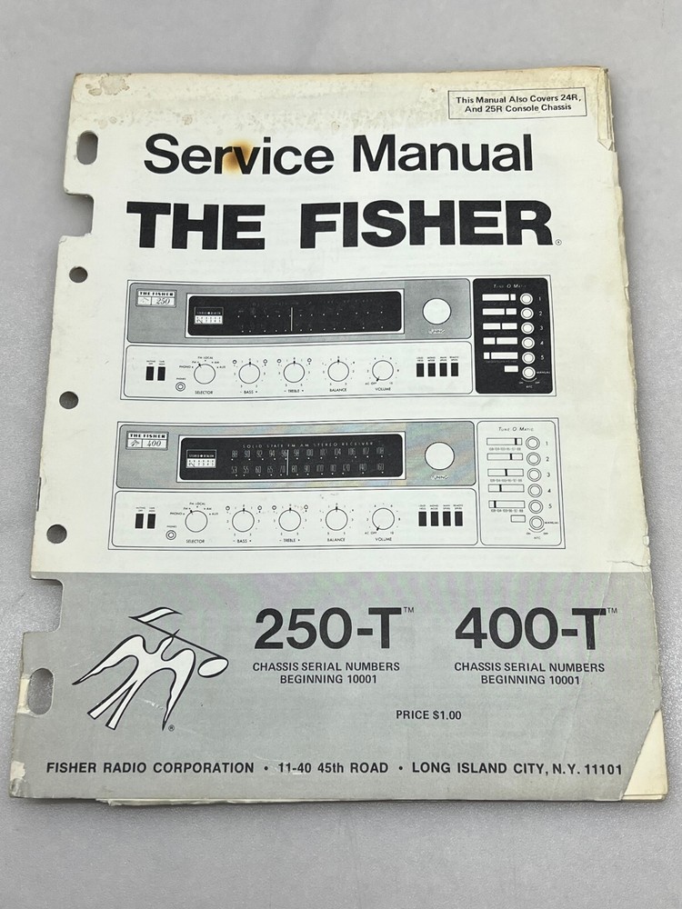 Up for sale 1 Used Original Service Manual for a Fisher Model 250-T Solid State FM AM Stereo Receiver, also covers model 400-T. Also includes a Confidential Parts Price List. Free Shipping !!!...