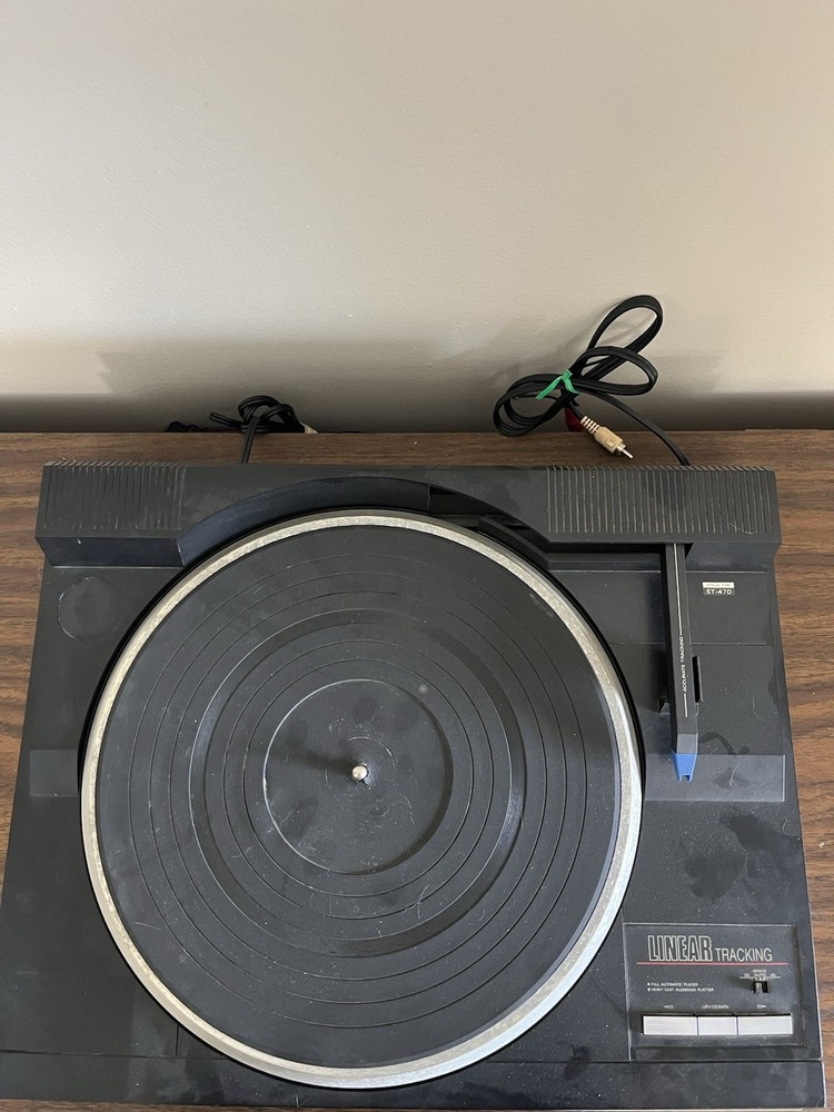 Fisher Model MT-729 Fully Automatic Tracking Turntable Doesn’t work. Is not getting any power. Dust mat is dirty and a little cracked towards middle but is still flexible. 45 rpm adapter is missing.