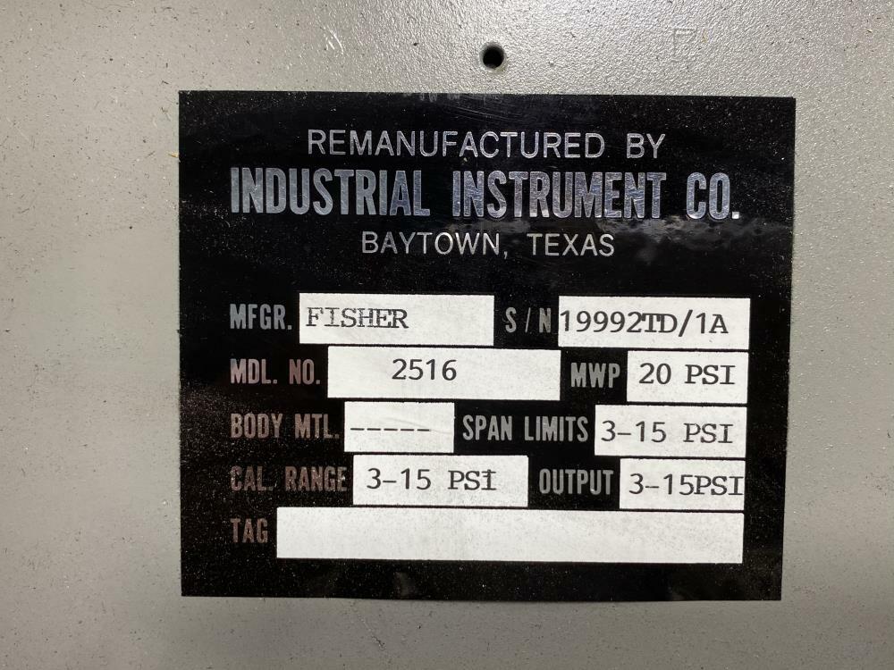 Fisher Multi-Trol 2516 Pneumatic Receiver Controller 3-15 PSI Product Description Fisher Multi-Trol 2516 Pneumatic Receiver Controller 3-15 PSI Model #: 2516 MWP: 20 PSI Span Limits: 3-15 PSI Cal. Range: 3-15 PSI Output: 3-15 PSI Serial #: 19992TD/1A Remanufactured by Industrial Instrument Co. Condition Note: Item is Remanufactured, but Unused And Sold AS IS. ref #: 107200 Item(s) are surplus and have not been tested. All items are being sold "AS IS". Contact Information Marie Cilento Steven Levy Enterprises 1412 Pennsylvania South Houston, TX 77587 Shipping & Handling Item location: South Houston, Texas, United States Services available: Freight - Check the item description or contact the seller for details Ships to: United States Seller's payment instructions All items sold are FOB Bensenville, Il. location unless otherwise noted. All items offered are subject to prior sale or other disposition. Base shipment costs $150.00. This cost may vary depending on shipment location and type of freight carrier selected. Prep for each item also will vary Please call for shipping estimates and payment terms. We accept Visa, Master Card, AMEX and wire transfers. Please advise for other payment terms. A 3% Convenience Fee will be charged if paying by credit card. All items sold are FOB Bensenville, Il. location unless otherwise noted. Domestic Shipping We ship via UPS Services with declared value and package tracking. International Shipping We ship via UPS Services with declared value and package tracking. International buyers are responsible for any and all applicable customs, duties, taxes and fees. Shipping will be arranged by a local freight forwarder and based on 2 service options: DAP - Door to door excluding duty and tax to most cities. CIP - Door to Airport. Import licenses and other local customs requirements must be accessed by the buyer prior to purchase. Seller will not be held responsible for any customs issues once order arrives at the destination. Order must be fully custom cleared to allow delivery to the door. Freight Shipping: We offer competitive rates for shipping freight items. If shipping to a residential address, additional fees apply, assessed by the freight company. Terms and conditions: EXPORT COMPLIANCE These Terms of Use involve the sale of Assets which are subject to U.S. government export control laws and regulations and may, in certain cases, also be subject to foreign export laws and regulations. In order to ensure compliance with such laws and regulations, Buyer agrees as follows: Buyer acknowledges that its receipt and use of the Assets are subject to U.S. export control laws and regulations and may be subject to other foreign export laws and regulations. Buyer is not a citizen, national, permanent resident of, or incorporated or organized to do business in, and is not under the control of, the governments of Cuba, Iran, North Korea, Sudan or Syria. Buyer will not sell, transfer or otherwise re-export the Assets, directly or indirectly, to the above mentioned countries or to citizens, nationals or permanent residents of those countries. Buyer is eligible to receive exports of the Assets in that Buyer is not listed on any of OFAC's list of Specially Designated Nationals or on the U.S. Department of Commerce's Table of Denial Orders or Entity List or Unverified List. Buyer will not sell, transfer or otherwise re-export the Assets, directly or indirectly, to any ineligible persons. Buyer will not use the Assets and will not enable the Assets to be used for any purposes prohibited by U.S. export laws and regulations, including the development, design, manufacture or production of nuclear, missile, chemical and biological weapons and technology. Buyer will not export or import the Assets in contravention of any applicable foreign export or import laws. ***A signed confirmation of above terms must be received prior to shipment*** Return Policy If you receive an item that is not as described in the listing, the Seller may offer you a similar item or issue you a full refund. Payment Method Payment Details: Company Checks, Wire Transfers, Purchase Orders, Visa/MasterCard, Amex