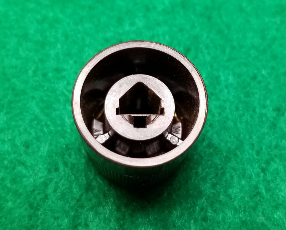 Fisher NEW OLD ORIGINAL STOCK Tuning Knob Vacuum Tube TA600, 100T, Others! These are ORIGINAL NEVER USED OLD STOCK made in W. Germany by OKW just like any other Vintage Fisher knob! This knob is correct for the Fisher TA-600 Receiver and the 100-T Tuner Preamplifier. Each of these units have TWO independent tuners and each uses one of these knobs. It may fit other models, however, It is NOT correct for the TA800! The knobs used on the TA600 and 100-T have slightly CONCAVE front faces while the TA800 knobs have a perfectly FLAT face and are NOT the same size. VERY limited supply when these are gone they are GONE! FINI! CAPUT! NO MORE! Minor bag marks may be present but these are new and look great. Shipping for all Great 50 USA States is $4.50, Canada $15, Other countries $25. PLEASE NOTE! Shipping costs have increased dramatically and ebay is now charging sellers OVER 17 percent in fees which is calculated on the ENTIRE amount INCLUDING SHIPPING AND SALES TAX!! YES - we even pay fees on SHIPPING and SALES TAX!!! As always thanks for looking and please see our other very interesting items!