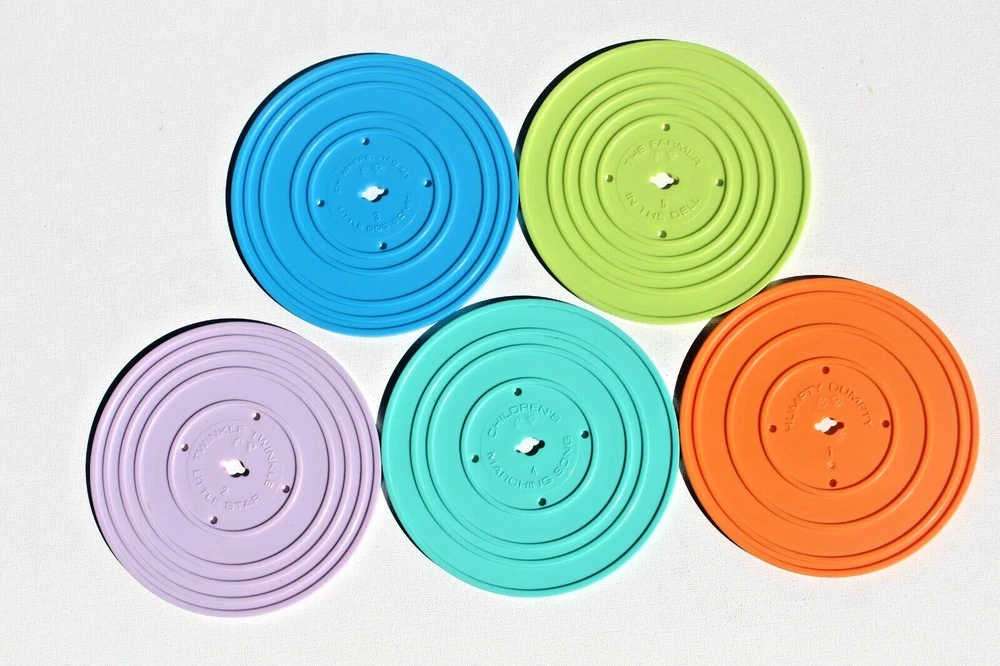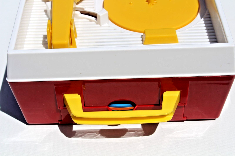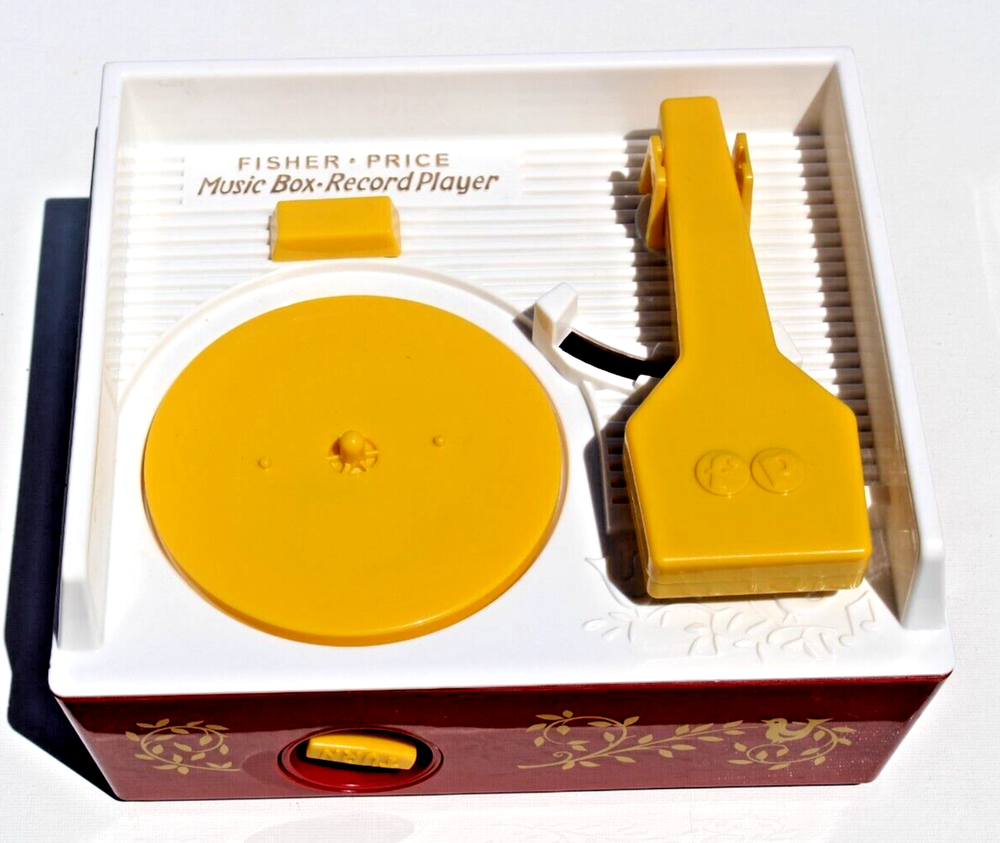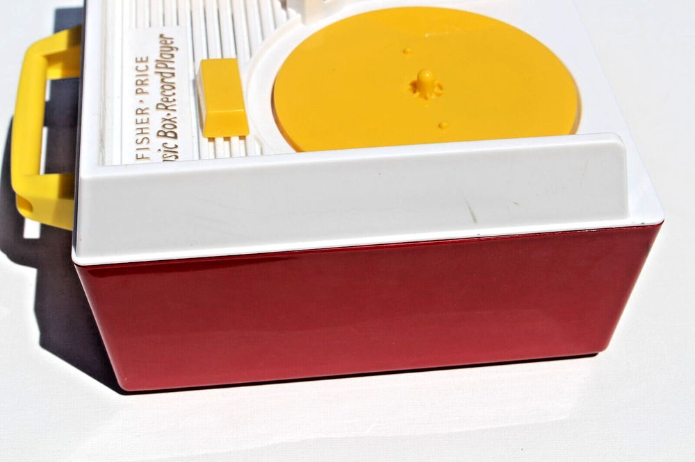FISHER PRICE RECORD PLAYER Used item. Clean and working. Included all 5 records with 10 tunes. Requires 3 AA batteries, not included. Features 10 songs on 5 "Playable" (one song per each side) records stored inside the record player. Handy carrying handle for tunes on the go. A great gift for babies & toddlers ages 18 months & up for hands-on, screen-free play!! Requires 3 AA batteries, not included. Plays the following songs: 1. Humpty Dumpty 2. Jack and Jill 3. Twinkle Twinkle Little Star 4. Au Clair De La Lune 5. Oh Where Has My Little Dog Gone? 6. London Bridges 7. Children's Marching Song 8. Camptown Races 9. Hickory Dickory Doc 10.The Farmer in the Dell box 9 ANN