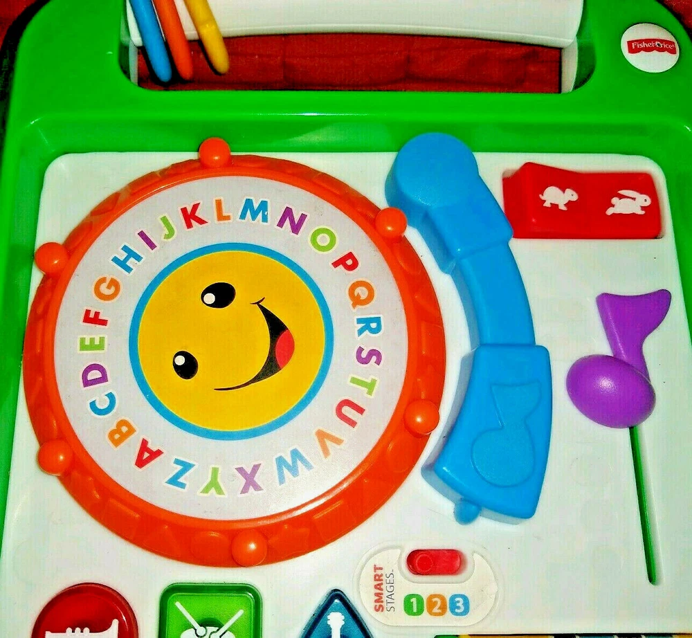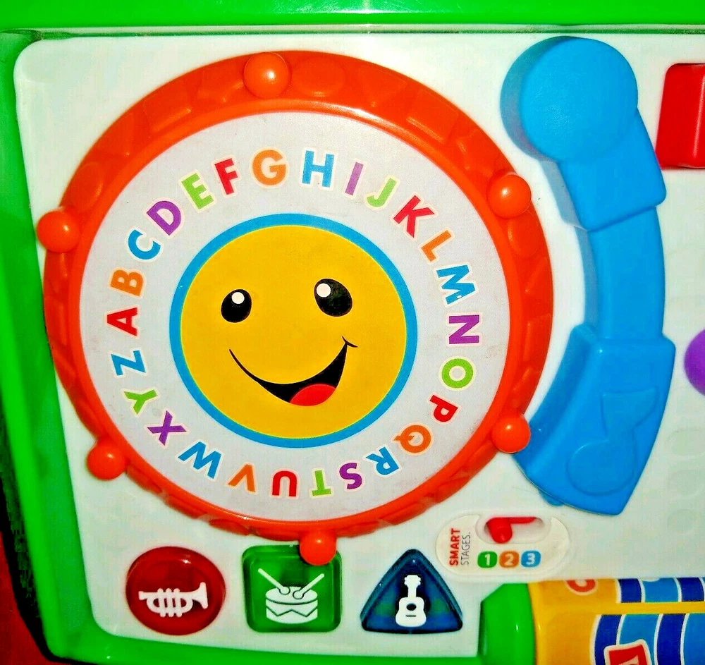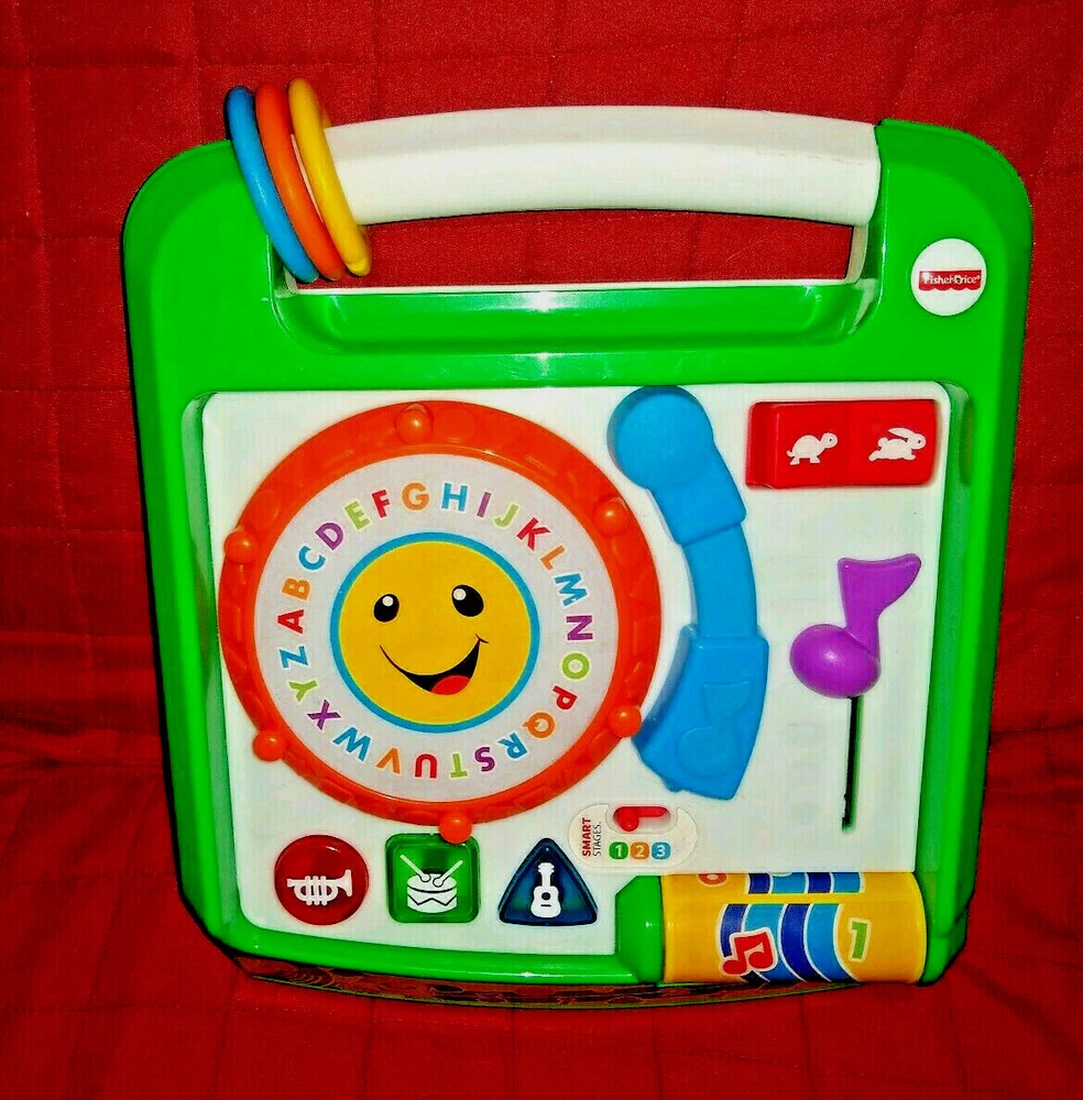 Fisher Price Laugh & learn Smart Stages Remix Record Player 2016 DJ Baby is in the house! The Fisher-Price® Laugh & Learn® Remix Record Player™ lets babies put their own "spin" on learning play with three levels of learning content, built-in activities and fun music, so they can rock out while learning about opposites, colors, numbers, shapes and more! This rockin' toy provides several ways for little DJs to play and learn. When babies spin the record or bat at the roller bar, they'll hear a variety of cool tunes and phrases. ("Let's play some tunes!") Colorful buttons help babies learn about shapes and colors. And as little ones grow, they'll even start to learn simple words in Spanish ("Blue! Azul!")! They can also slide the volume switch up and down or flip the toggle switch to hear music and phrases to learn about opposites. This is a lean, mean, spin and learn machine! It even gives fine motor skills a boost when babies grasp and interact with the clacker beads, buttons and toggles, spin the record, slide the record arm and more. As little ones grow, so does the way they play and learn. With Smart Stages™ technology, the learning fun can keep going as your baby keeps growing! Level 1 | Age: 6+ Months | Stage: Explore At this stage, tons of hands-on activities spark baby's curiosity and reward their exploration with fun sounds and phrases. Level 2 | Age: 12+ Months | Stage: Encourage In this stage, your little DJ will hear simple questions and directions that encourage them to find familiar objects and more from Level 1 – rewarding them when they do for a job well done! Level 3| Age: 18+ Months| Stage: Pretend As your toddler grows, this stage offers fun imaginative songs and phrases that encourage early role play, helping young music makers imagine themselves doing big things! 7 hands-on ways to activate learning content! Spin the record to activate a variety of fun songs Bat at the roller bar to hear cool tunes Slide the volume switch up and down Flip the toggle speed control switch back and forth Press each of 3 light-up shape buttons – Red circle with trumpet, green square with drum & blue triangle with guitar. Smart Stages™ technology lets you take learning to the next level when your child is ready Just slide the switch to change the level and the songs, sounds, tunes & phrases When baby pushes the volume or speed switch, the music gets louder/softer or faster/slower – a cool and exciting way to learn about opposites! Teaches colors, shapes, opposites, Spanish words & phrases, numbers and more! More than 65 songs, sounds, tunes & phrases! It is in nice, played with condition. My home is SMOKE FREE and PET OCCUPIED but I cannot speak for where these items have been before. I try to describe items to the best of my ability but am no expert and condition is sometimes a matter of opinion. Any issues will be noted in descriptions. I clean and test all toys to make sure they work satisfactorily. Batteries are not included. Check out my other listings! INTERNATIONAL BUYERS ARE WELCOME! Please check with your country's customs office to determine what these additional costs will be prior to bidding/buying.