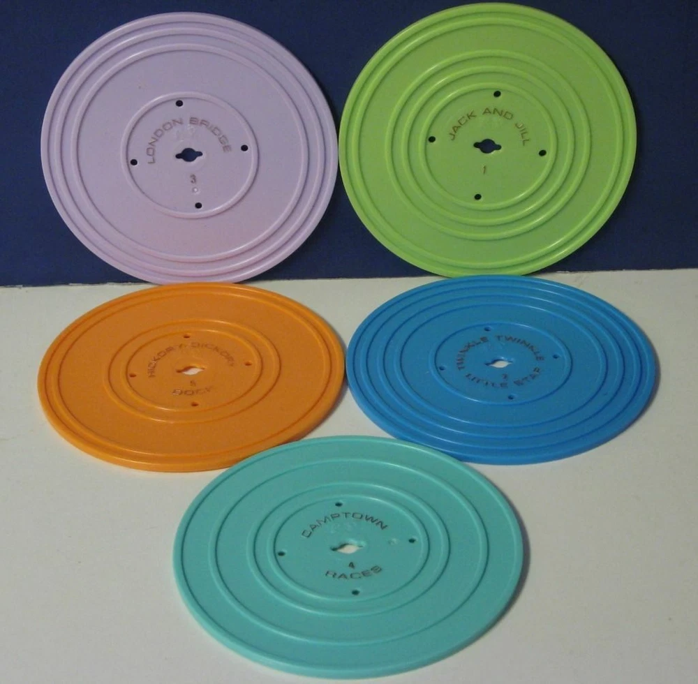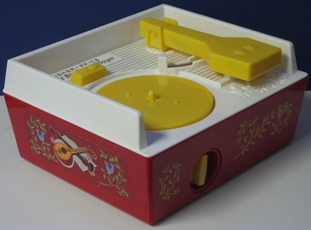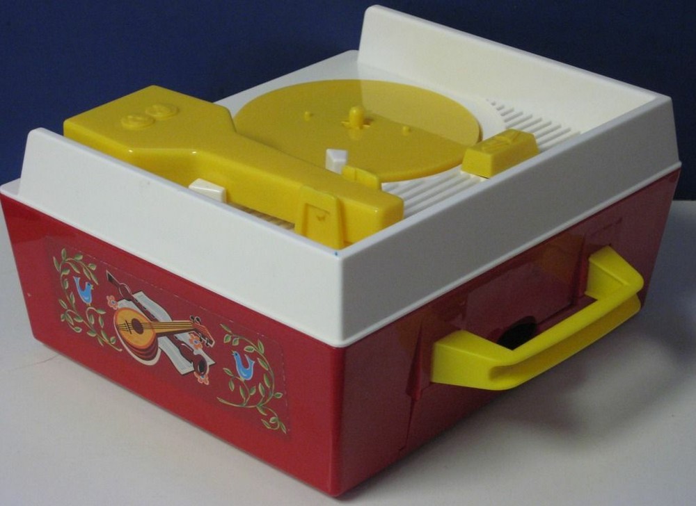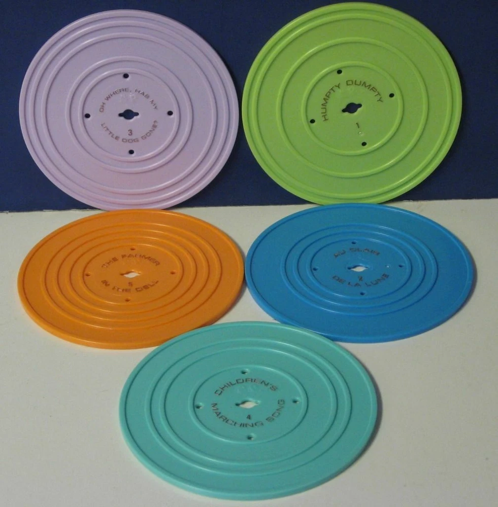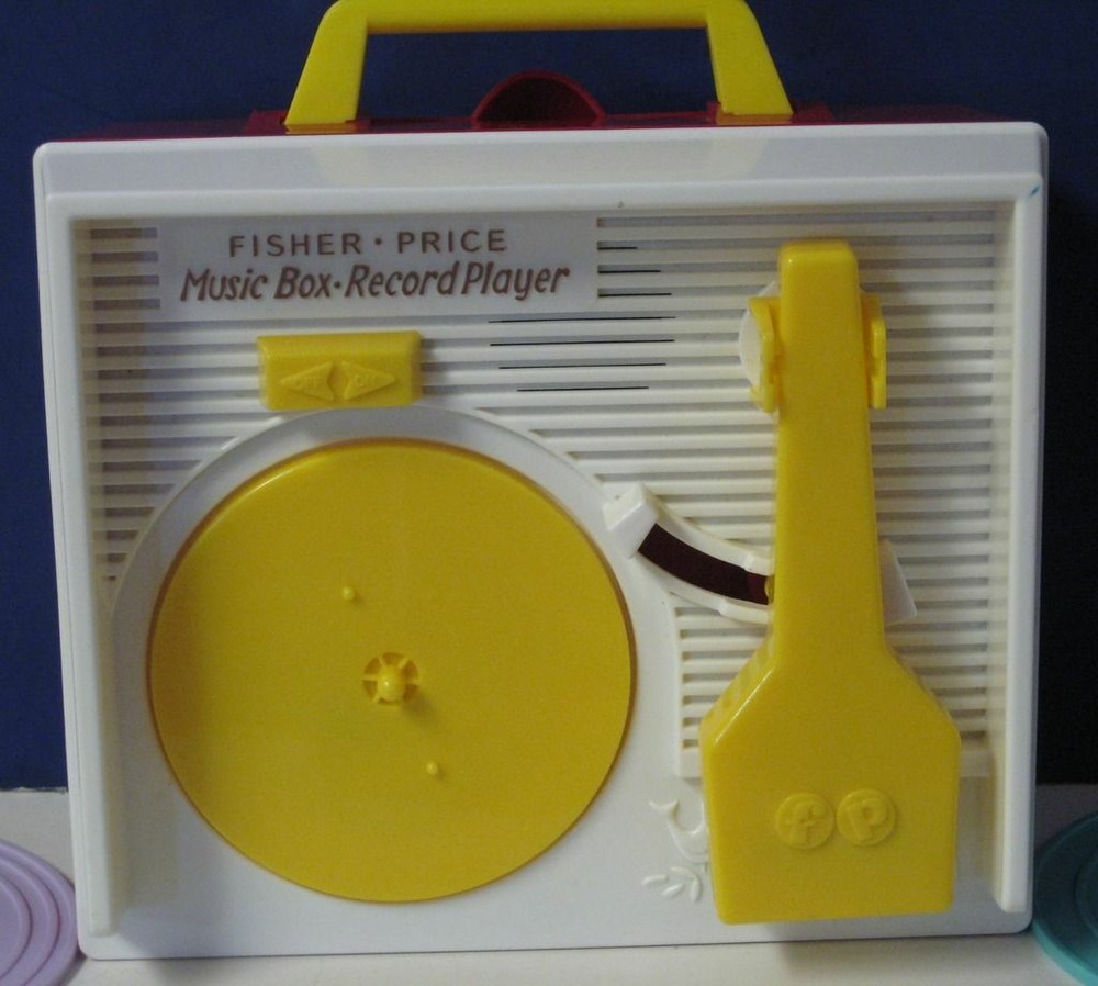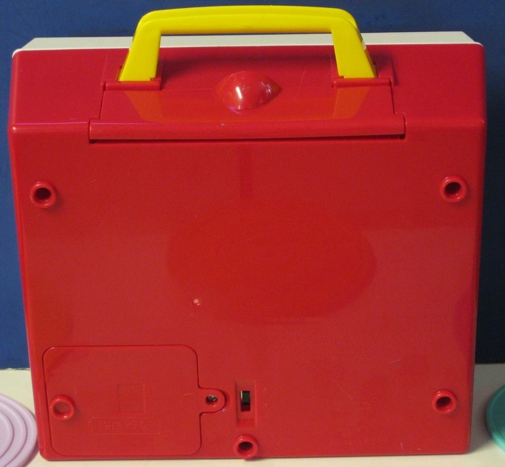 Fisher Price Music Box Classic Wind Up Record Player with 5 Records - 2010 Remake This is the 2010 rerelease of the classic wind up Music Box record player from Fisher Price. This version runs on 3 AA batteries, and works as shown in the demonstration video on my BitChute channel at bitchute.com/video/ebPdzcZRSvMe/. It comes with 5 records ( stored in a compartment in the rear of the player ), each featuring 2 songs: Humpty Dumpty / Jack and Jill Au Clair De La Lune / Twinkle Twinkle Little Star London Bridge / Oh Where Has My Little Dog Gone Camptown Races / Children's Marching Song Hickory Dickory Dock / The Farmer in the Dell The player and the records show some light wear from normal play and handling. No batteries, packaging, or anything else is included.
