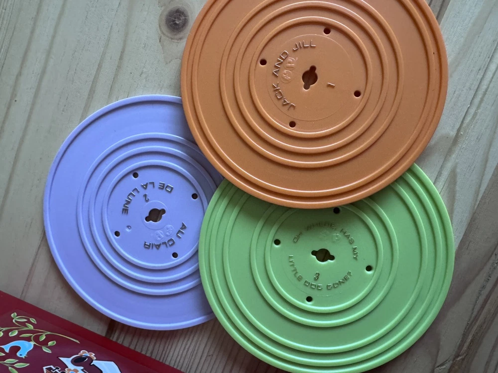 This adorable Fisher Price record player is a nostalgic gem! Plays all six songs perfectly—great condition, bright colors, and such a fun throwback. My little one loves dropping the records and dancing to the tunes. Works like a charm, just as described. A must-have for vintage toy collectors or anyone wanting a sweet musical toy for kids!