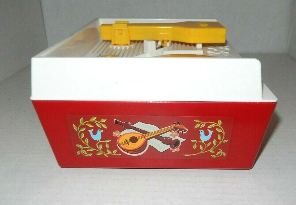 Fisher Price Music Box Record Player 2010 Toy With 3 Double Sided Records Tested Wind-Up Volume button on back Takes 3 AA batteries (included) 6 Total songs Works great