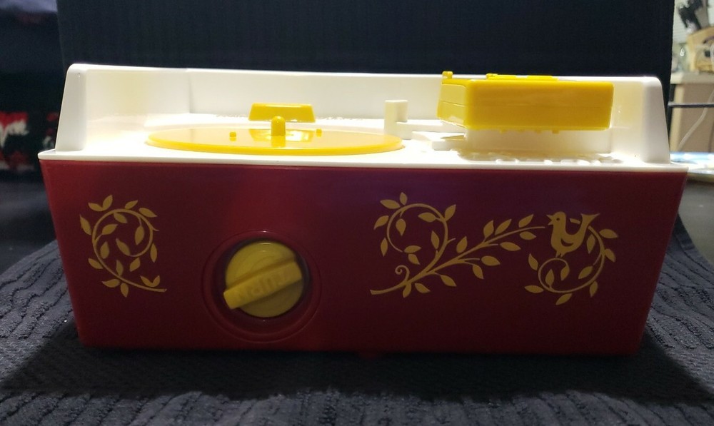 Fisher Price Music Box Record Player 2014 Mattel Toy Tested With 5 Records 1697. Works wonderfully. In very nice condition.