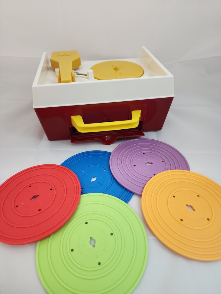 This Fisher Price Music Box Record Player is a vintage piece that will bring joy to your child. Made in the United States in 2014, it comes with 5 double-sided records and 10 songs. It is recommended for children aged 2 and above and is perfect for those who love musical toys. The record player has not been modified and does not come with any custom bundles. It is a great addition to your child's toy collection and will provide hours of entertainment. The item in the photo is the item you will receive. Barely used item. Tested works good!